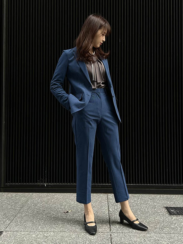 透けにくいしなやかな生地感と、ツートーン配色で落ち着いた印象を演出します。