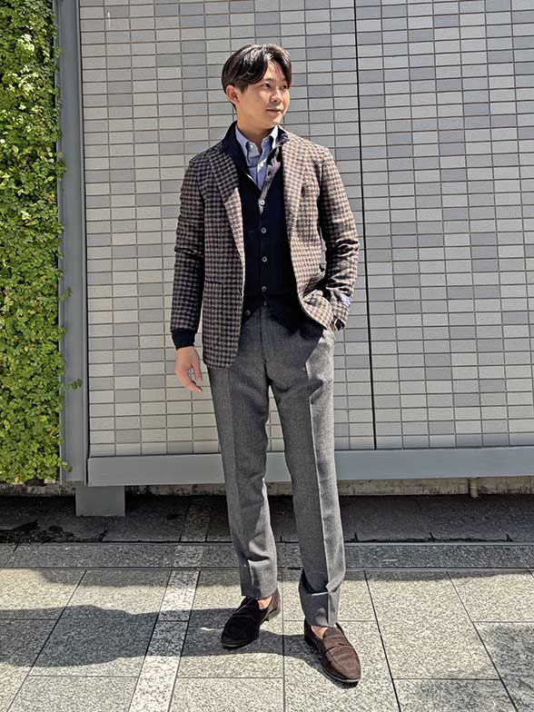 こなれた雰囲気もあり、カラーシャツやニットとの相性も抜群。