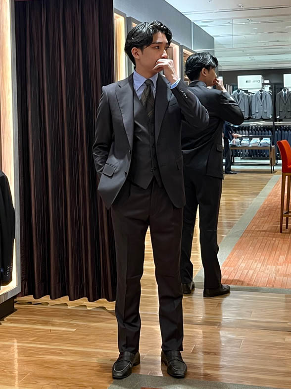 13,200円以上の購入で送料無料 ONLY PREMIO 伊レダ社 フレクソ チャコール ツイル ¥ 53,900 (税込) ONLY PREMIO ほかにはない、本物志向に向けたクラシックライン サイズ 44 46 48 50 52 在庫状況【選択しているサイズ】の在庫状況です。 前日までの店舗在庫が反映しております。 閉じる 閉じる 北海道関東東海・中部京都大阪・神戸中国・九州 閉じる 裾上げ(1本目) ※お直し料金は、シングル:1,100円(税込)/ダブル:1,650円(税込)にて承っております。 ※裾上げの直しをした場合、発送までに1週間前後お時間を頂戴いたします。 ※お直しした商品の返品・交換はできません。 ※裾上げ以外のお直しについては、実店舗にて承っておりますのでお近くの店舗へご来店ください。 股下丈 裾上げしない 48 49 50 51 52 53 54 55 56 57 58 59 60 61 62 63 64 65 66 67 68 69 70 71 72 73 74 75 76 77 78 79 80 81 82 仕上げ シングル ダブル(幅:3.5cm) ダブル(幅:4.0cm) ダブル(幅:4.5cm) サイズの測り方 数量 1 2 3 4 5 6 7 8 9 10 カートに入れる or 店舗試着 納期 : 翌営業日発送 お気に入りに追加 オンリーメンバーズ4つの会員特典 1 5%OFFクーポンプレゼント 2 年2回お買い上げ総額の7%をポイント還元 3 お誕生日の方はスーツ購入がお得 4 来店ごとに100円分のポイント加算(アプリのみ) 基本情報 アイテムサイズ ■シーズン 通年 ■商品説明 ウールにストレッチファイバー「ロイカV550」を混紡したREDAフレキソ。 それにより快適なストレッチ性を備えつつも100%土にかえるファブリックを使用しております。 サスティナビリティに注目しているREDA社の1着です。 特徴としては光沢があり高級感を感じられるため、ビジネス兼ブライダルでもご着用いただけます。 同生地の単品ベストも別途取り扱いしております。 ■機能 ナチュラルストレッチ ■モデル着用サイズ 身長182cm 体重70kg 着用サイズ48各サイズ着用イメージはコチラから ■生地ブランド説明 REDA 1865年、イタリア北部に位置するビエラ地区にウール工場を設立。 羊毛の段階から生地の完成まですべての工程をイタリアの自家工場で直接管理し、ウールの糸はニュージーランドの三つの自社牧場を始めとする土地で育った最高級メリノ品種の羊毛を使用し世界中へ出荷しています。 環境保護や動物愛護といったサステナビリティに関しても厳格な基準を設けています。 ■生産国 MADE IN VIETNAM 色 グレー系 柄 無地 仕様 <パルマモデル> 肩周りは少し構築的でありつつも、イタリアらしい首の吸い付きが特長のジャケット。 着丈もやや長めの設定にし、より風格を備えた仕上がり。 パンツは2タックデザインとなり、若干のゆとりをもたせたシルエット。 <ジャケット> ノッチドラペル AMFコバ サイドベンツ シングル2つ釦 フラップポケット 袖4釦重ね仕様 背裏仕様:背抜き <パンツ> ツータックテーパードパンツ フロントボタン留め 素材 毛99%,ポリウレタン1% 270g/m 品番 3-0344-85-452_CGR/無地 パルマモデル ≪ジャケットサイズ≫ 44:肩幅43.5 袖丈59 胸囲100 ウエスト 88 着丈71.5 46:肩幅44.5 袖丈60.5 胸囲104 ウエスト 92 着丈72.5 48:肩幅45.5 袖丈62 胸囲108 ウエスト 96 着丈73.5 50:肩幅46.5 袖丈63.5 胸囲112 ウエスト100 着丈74.5 52:肩幅47.5 袖丈63.5 胸囲116 ウエスト104 着丈74.5 ≪パンツスペック・裾上げ未≫ 44:股上23.5cm ウエスト77 わたり幅32 裾幅18cm 46:股上24cm ウエスト81 わたり幅33.5 裾幅18.5cm 48:股上24.5cm ウエスト85 わたり幅34.5 裾幅19cm 50:股上25cm ウエスト88 わたり幅36 裾幅19.5cm 52:股上25.5cm ウエスト93 わたり幅37.5 裾幅20cm カートに入れる or 店舗試着 納期 : 翌営業日発送 お気に入りに追加 この商品のスタイリング 身長 174cm / サイズ 46 イオンモール熱田店 身長 164cm / サイズ 44 札幌大通り店 身長 170cm / サイズ 46 mozoワンダーシティ店 身長 175cm / サイズ 46 神戸三宮店 身長 180cm / サイズ 48 PREMIO ルクア イーレ店