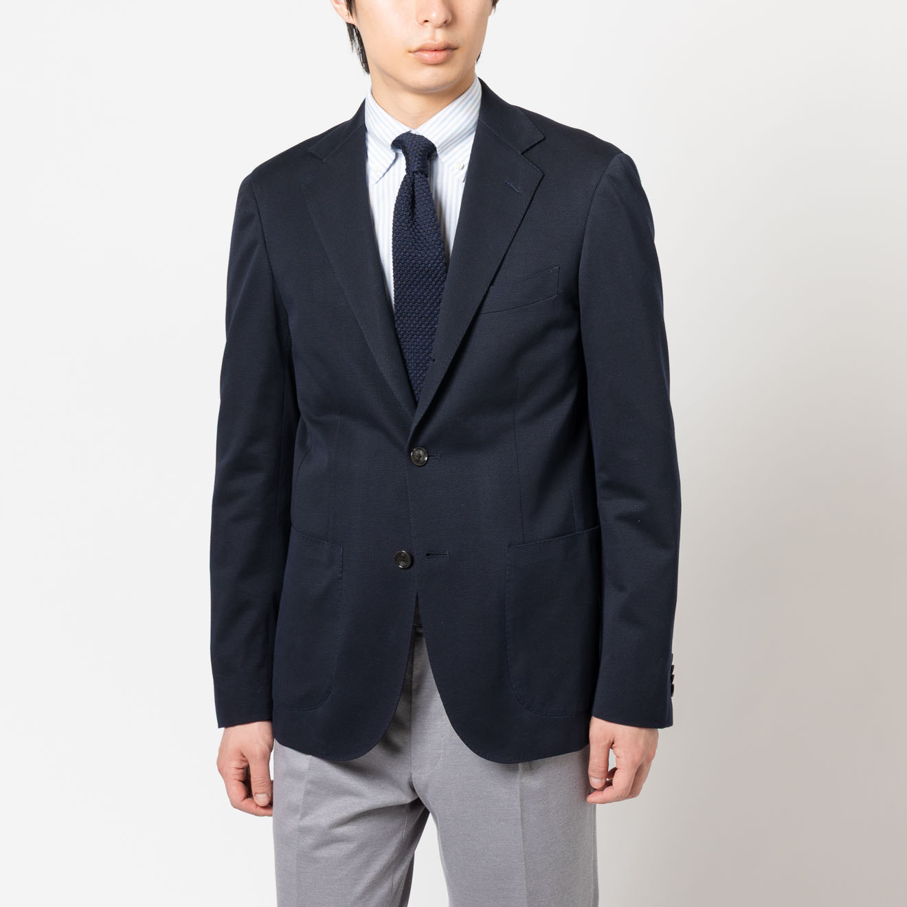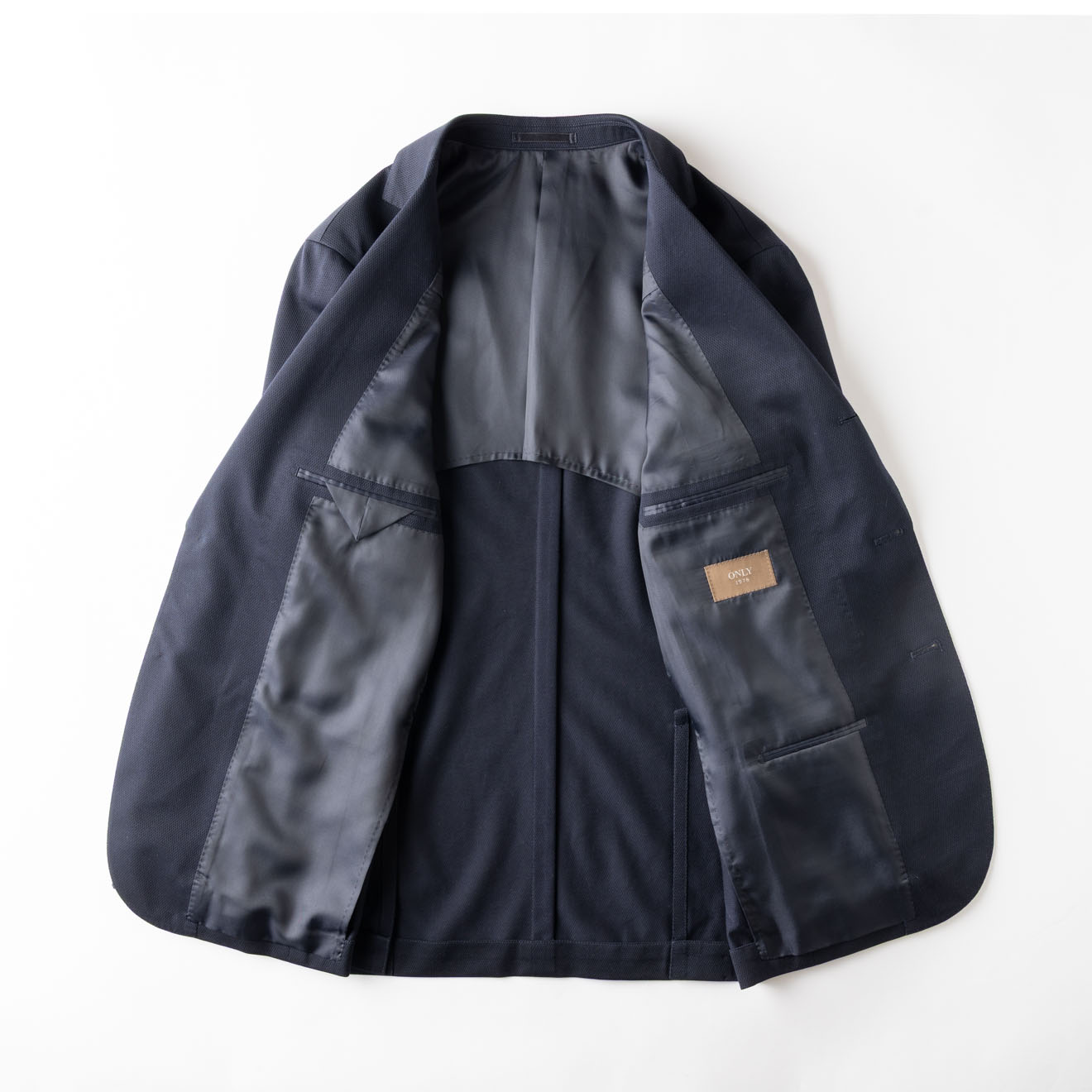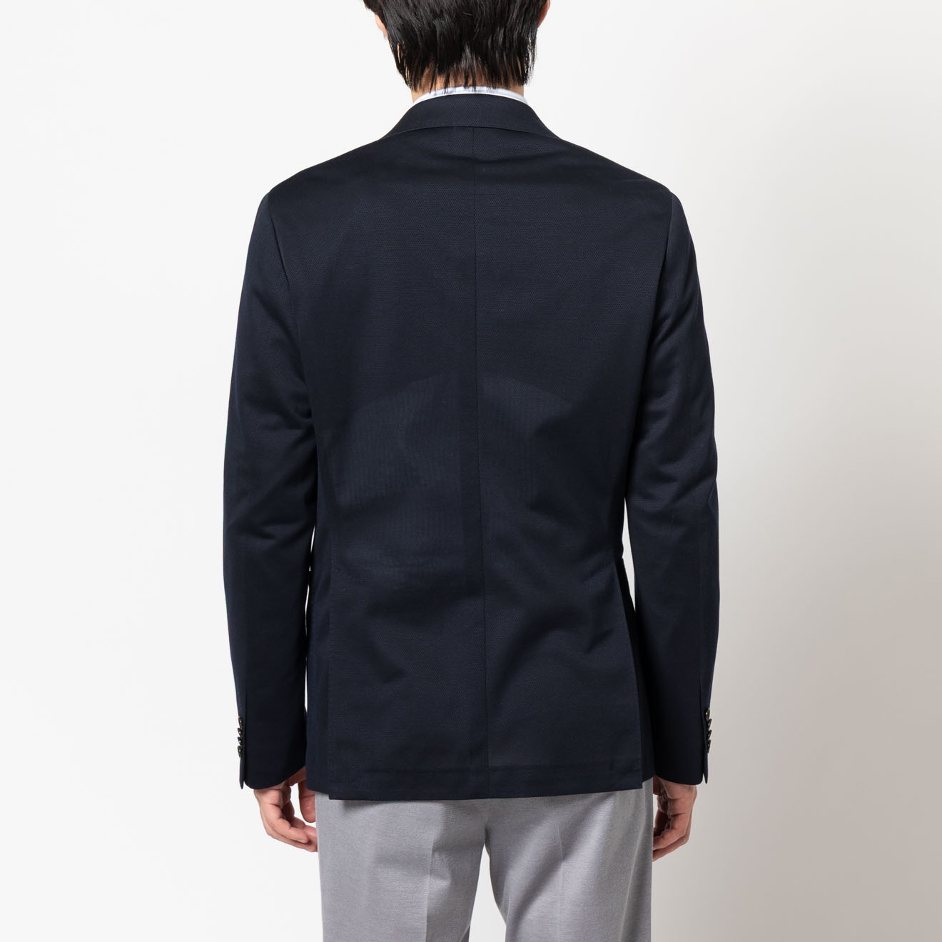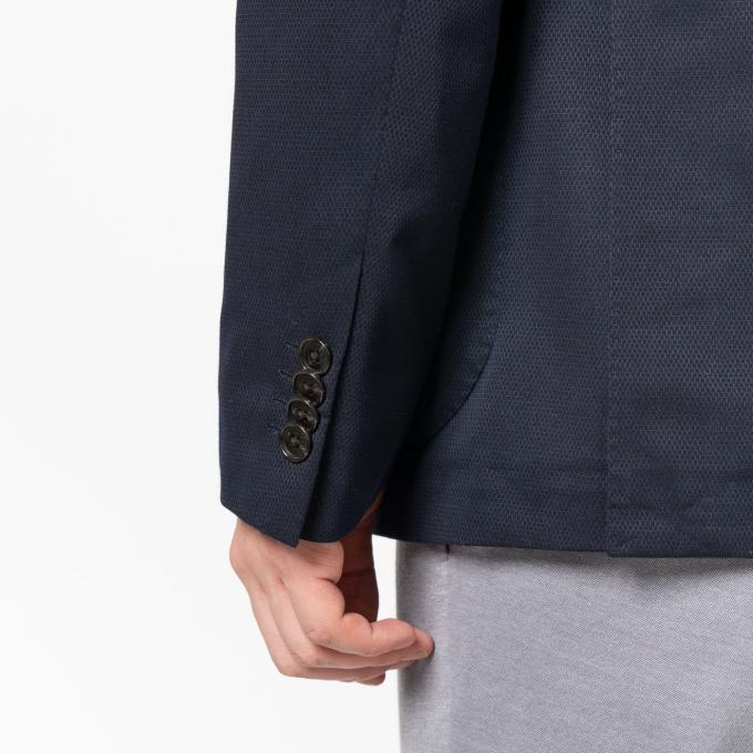 肩パッド不使用のナチュラルな肩周り、さらに毛芯をなくし、オンリー史上最軽量の軽やかさで快適な着心地を実現。