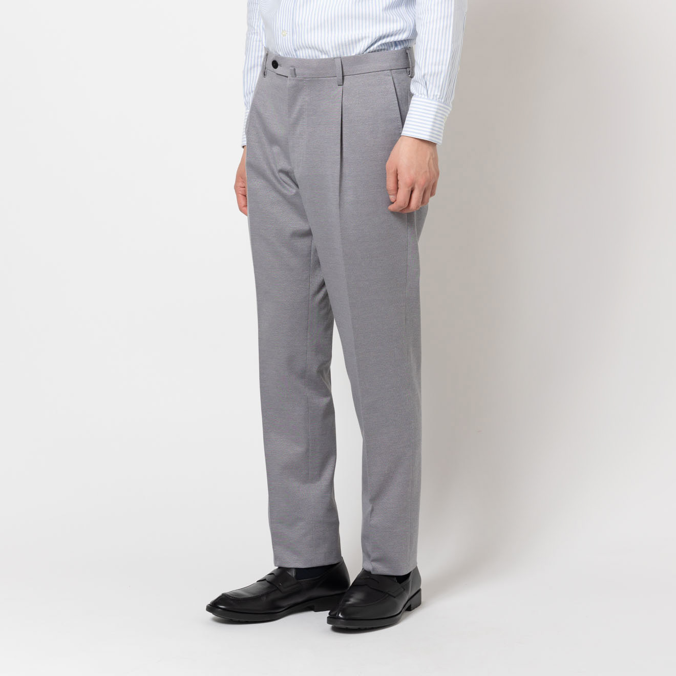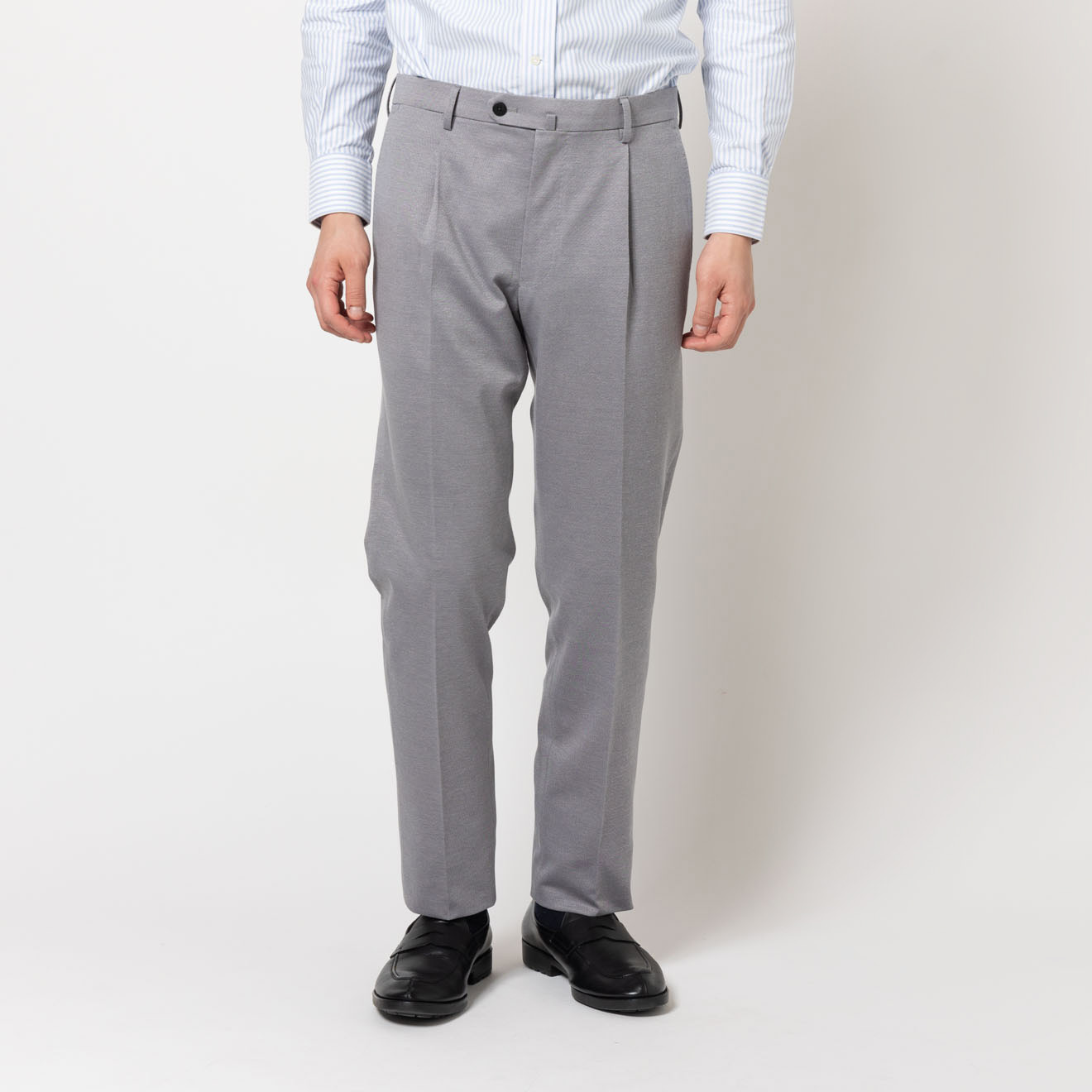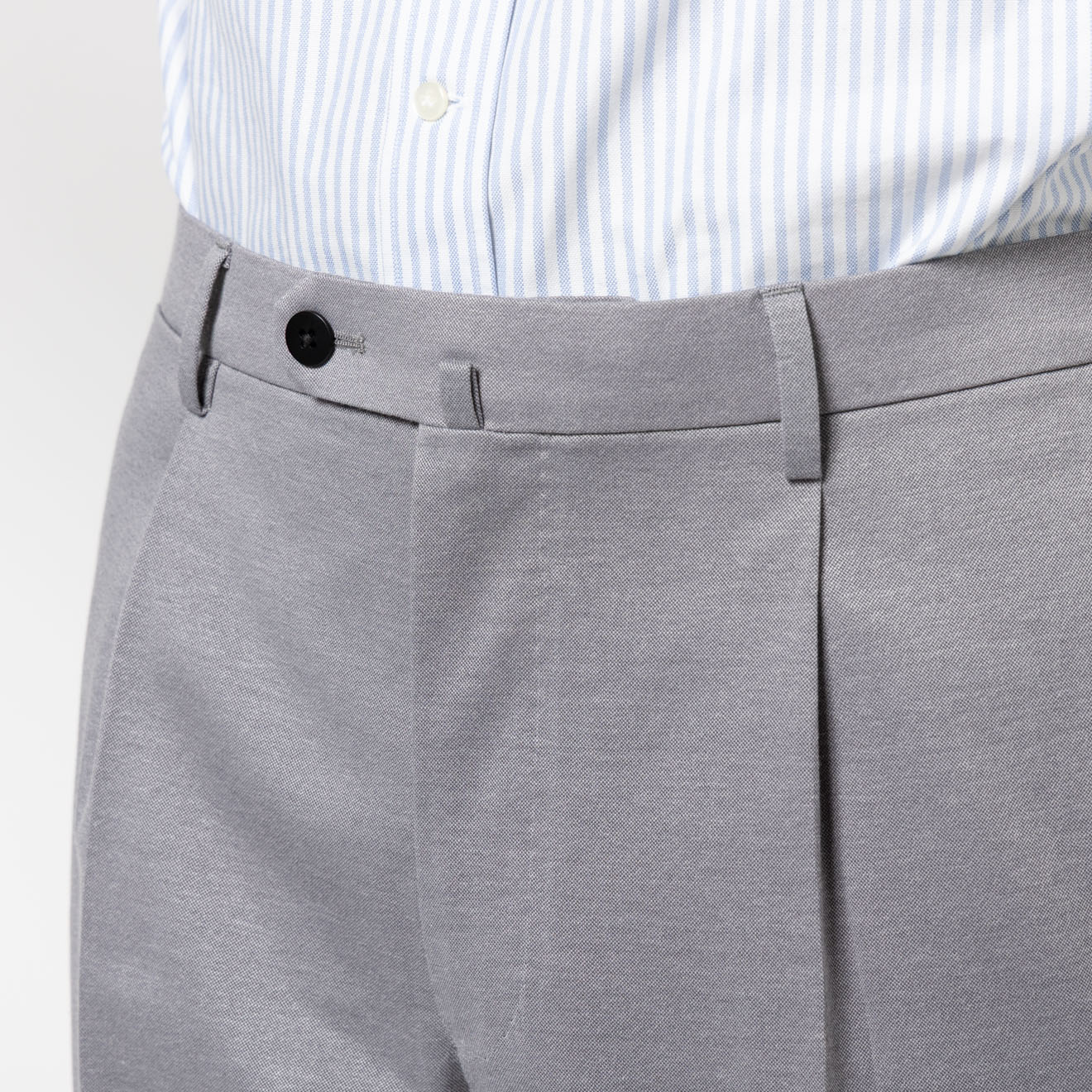 オックスフォード調の生地表情で、コットンパンツのような端正な見え感も魅力。