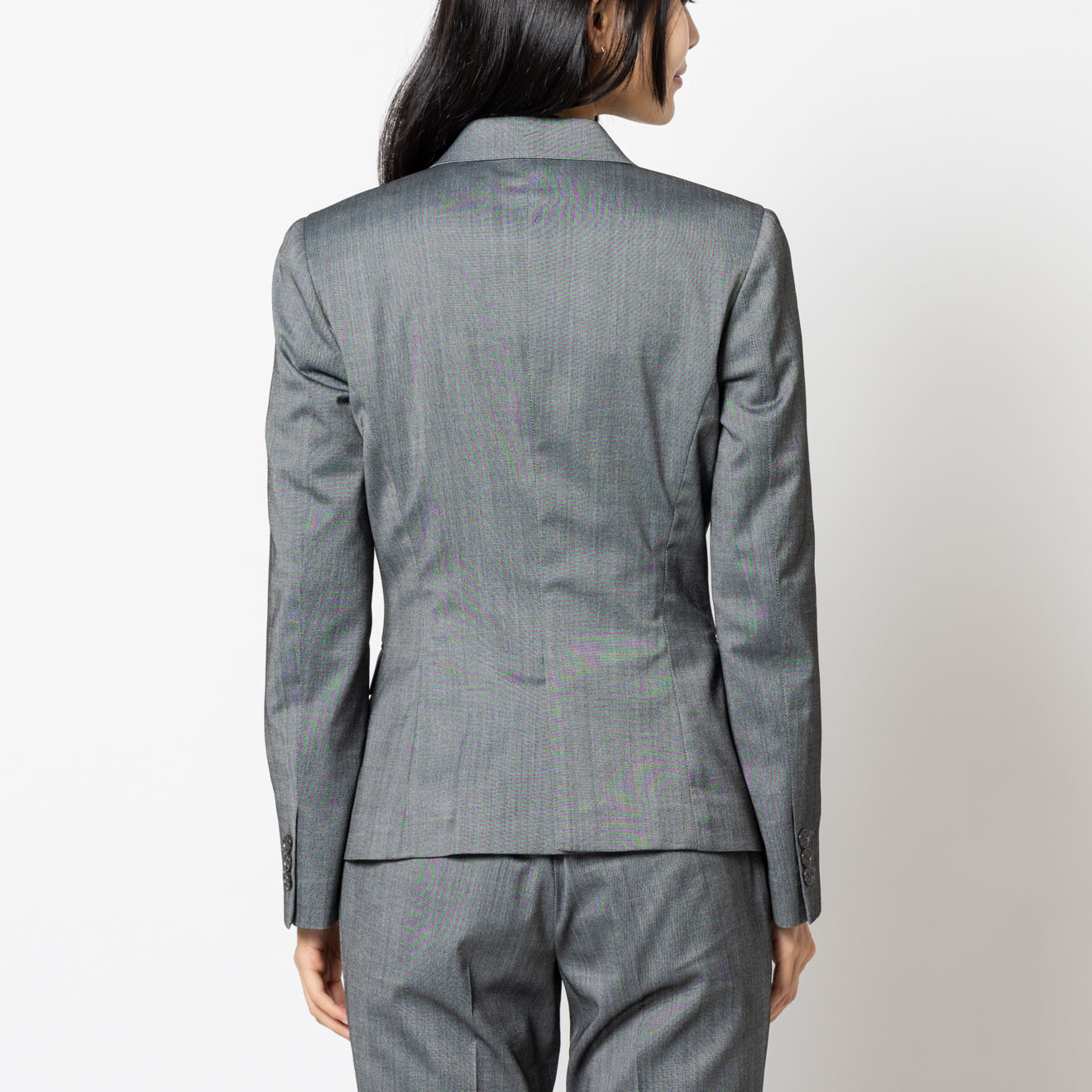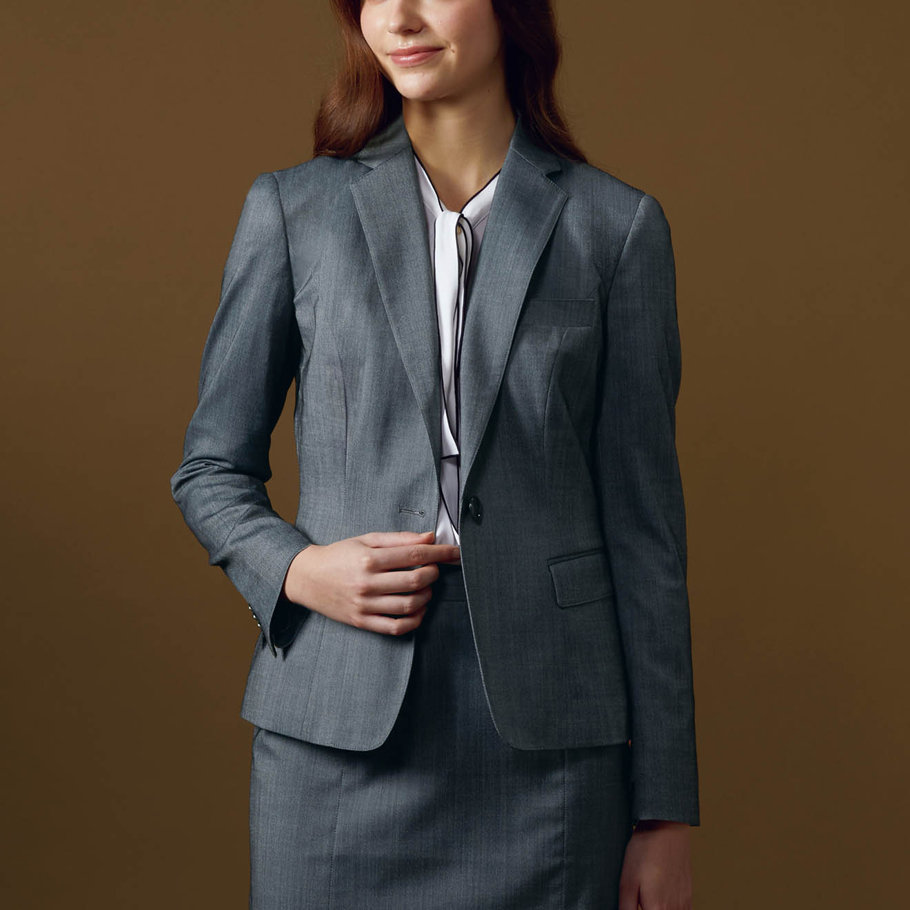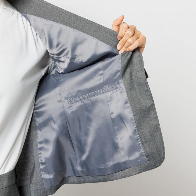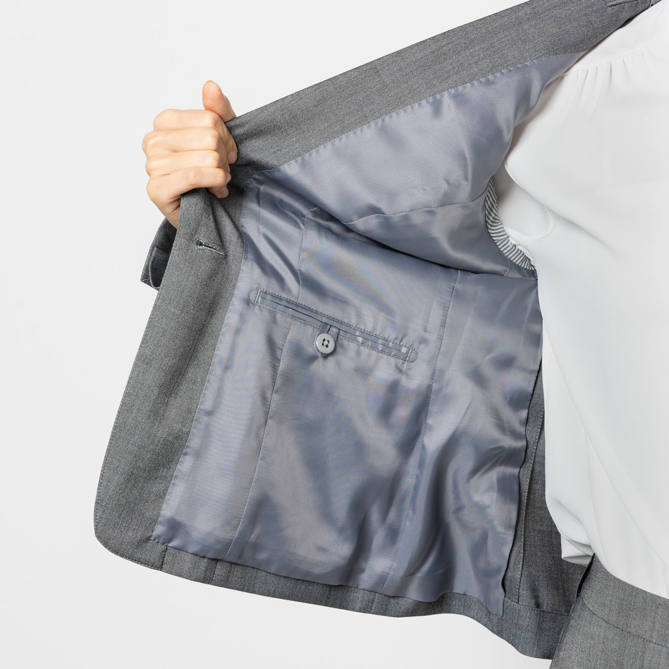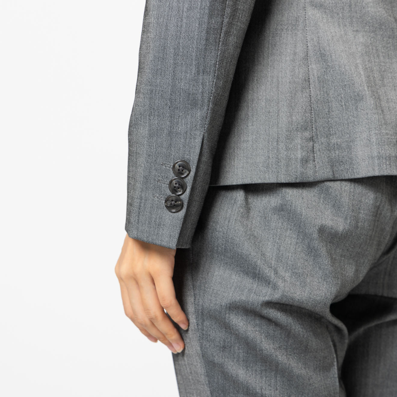 無地ながらシャークスキン特有の織り表情が立体感を生み、上品な印象。
