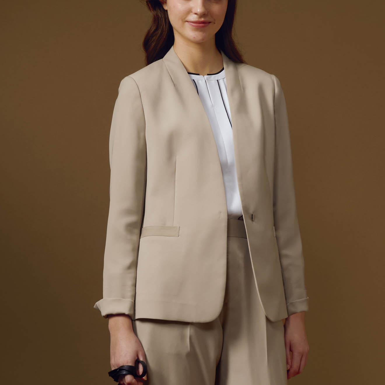 パンツはテーパードとワイドの2種、スカートは1種をご用意。また同生地でダブルブレストジャケットも展開しています。