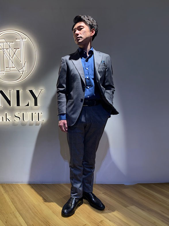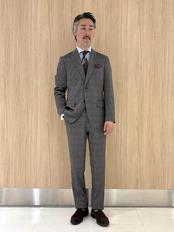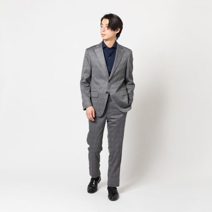 同素材の共生地パンツを合わせれば、王道のスーツスタイル(2パンツ対応可)。