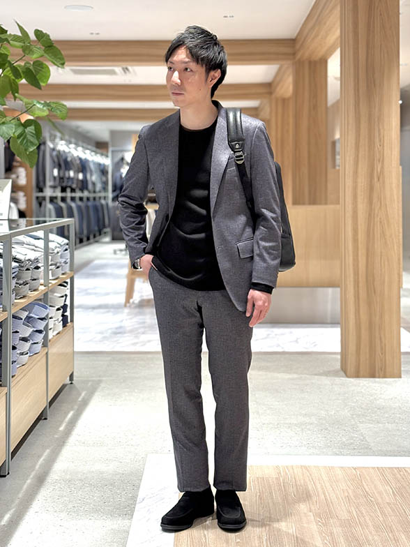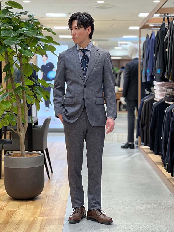 同素材の共生地パンツを合わせれば、王道のスーツスタイル(2パンツ対応可)。