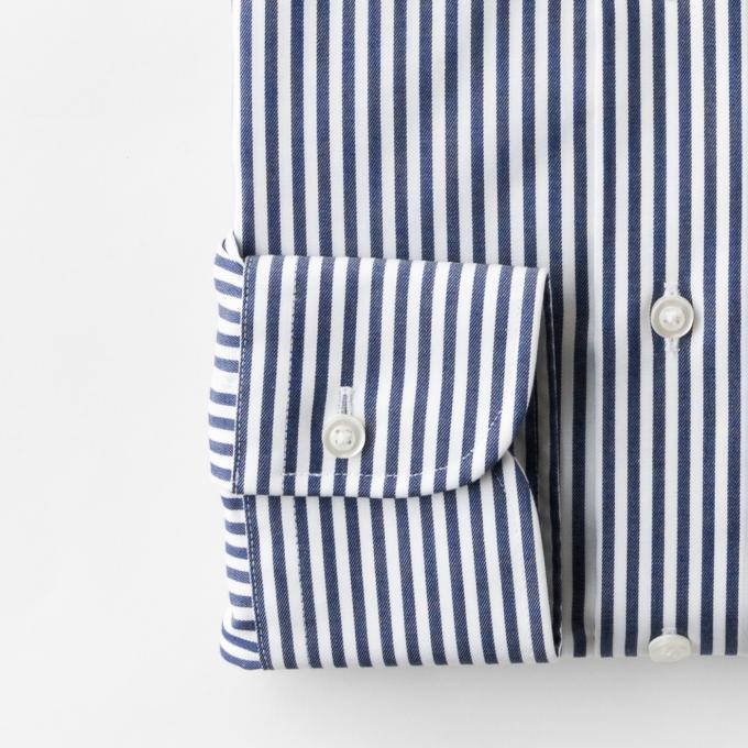 ボタンは強度に優れた耐圧釦を使用し、胸ポケットも付けたデイリーユースに適したドレスシャツです。