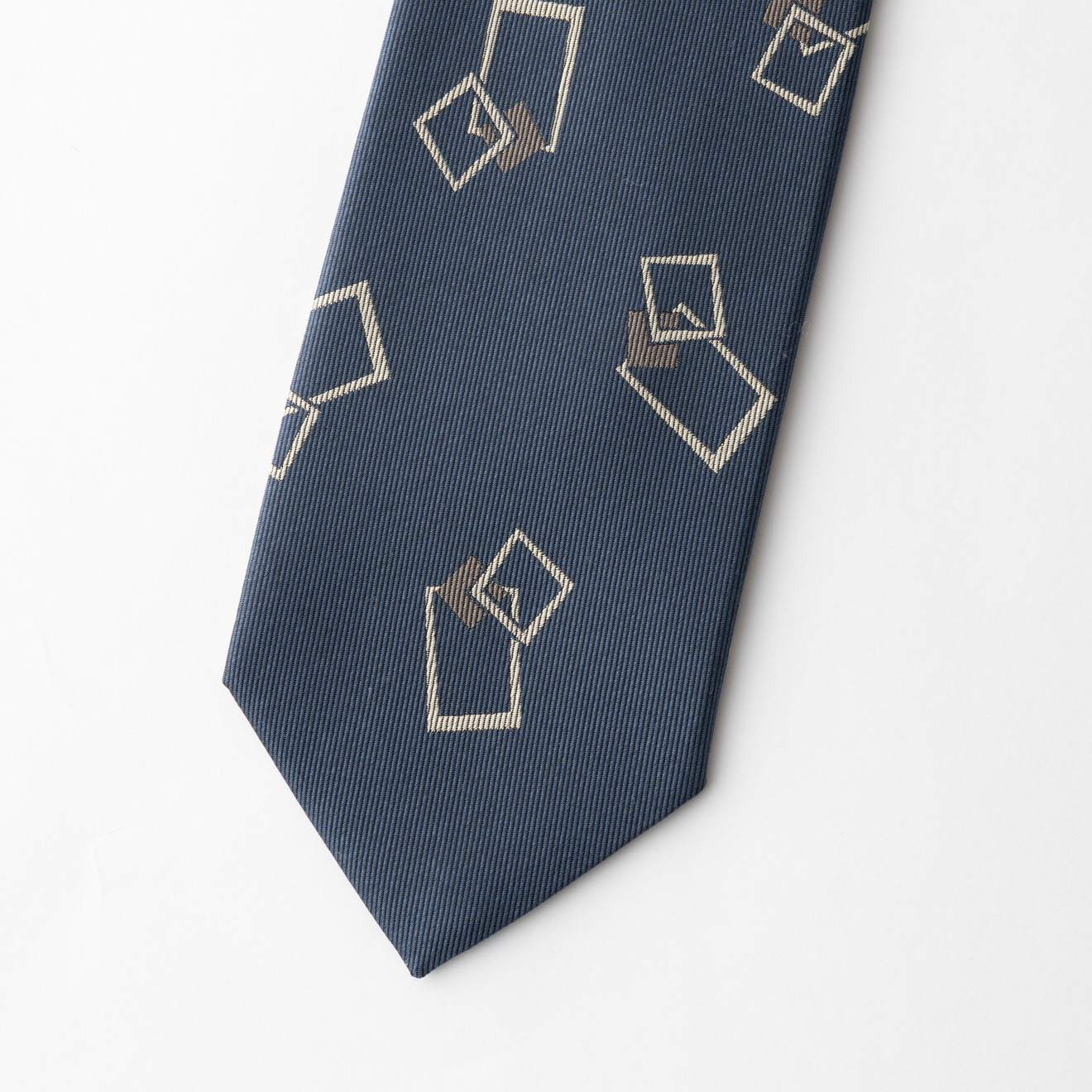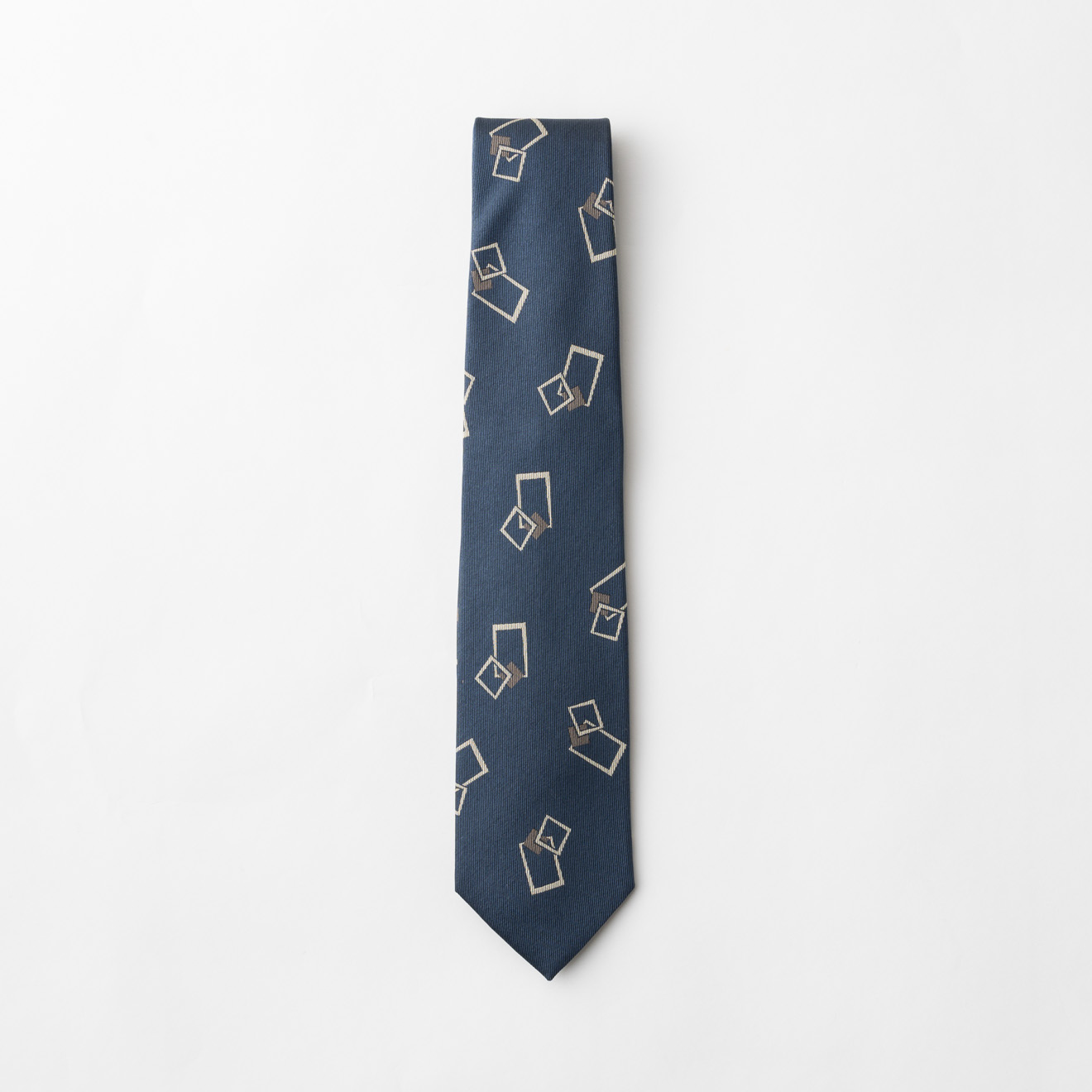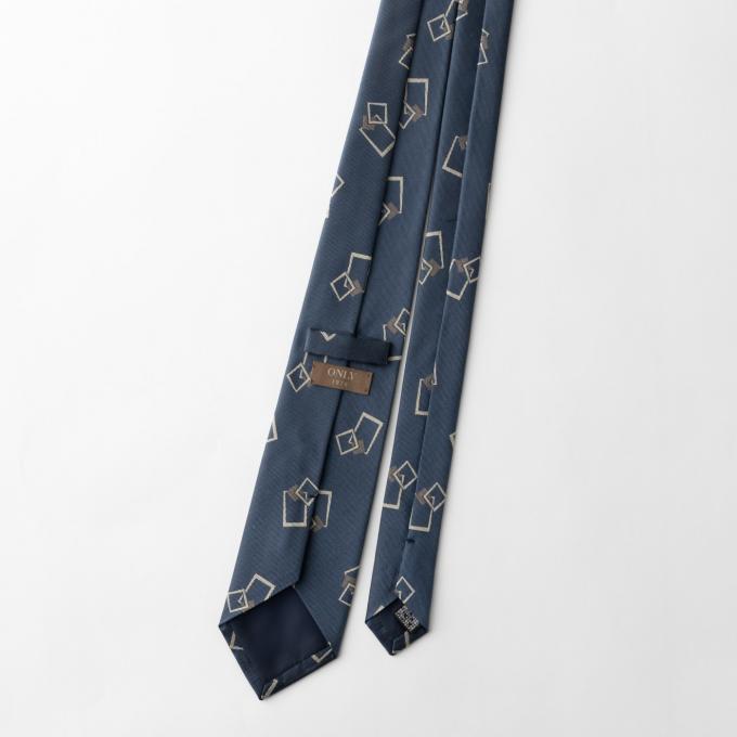 ブルー地にトレンド感のあるスクエア型のモチーフが特徴的な1本。