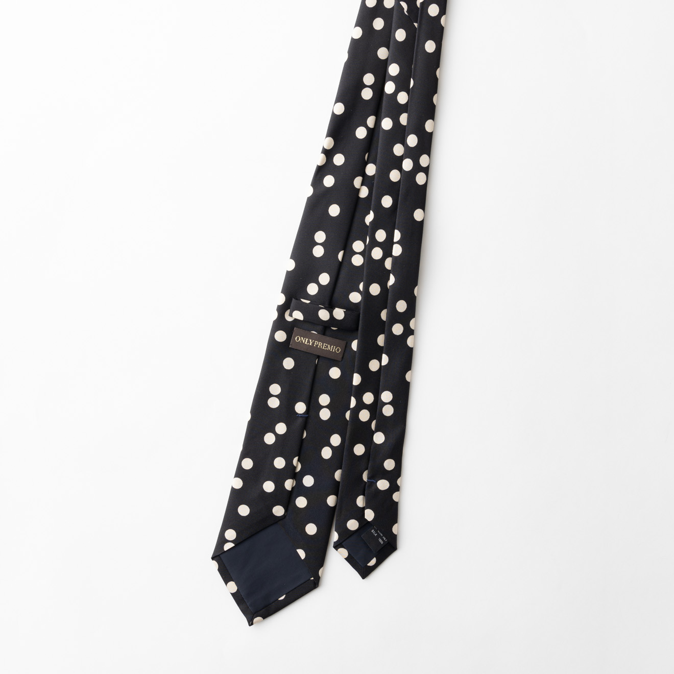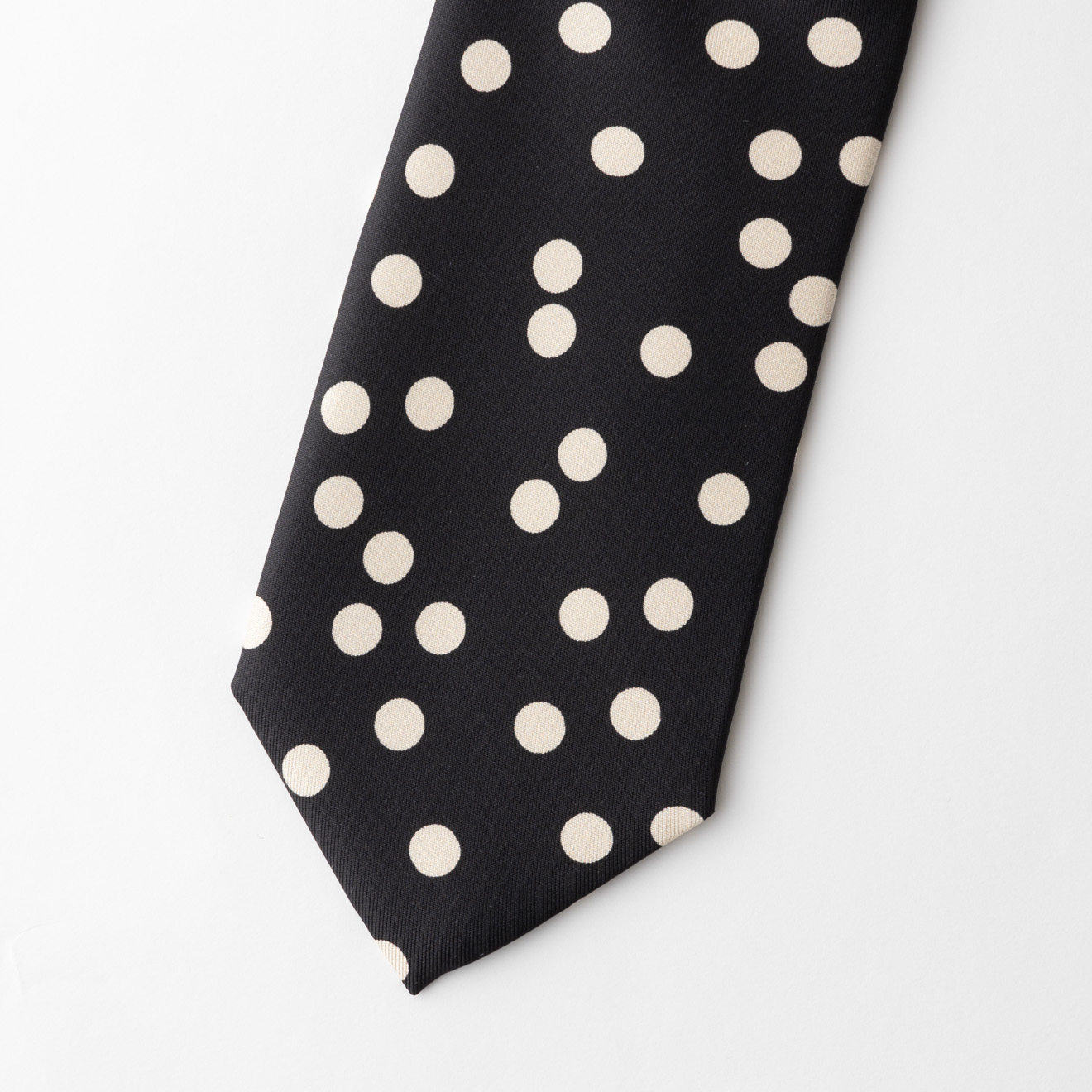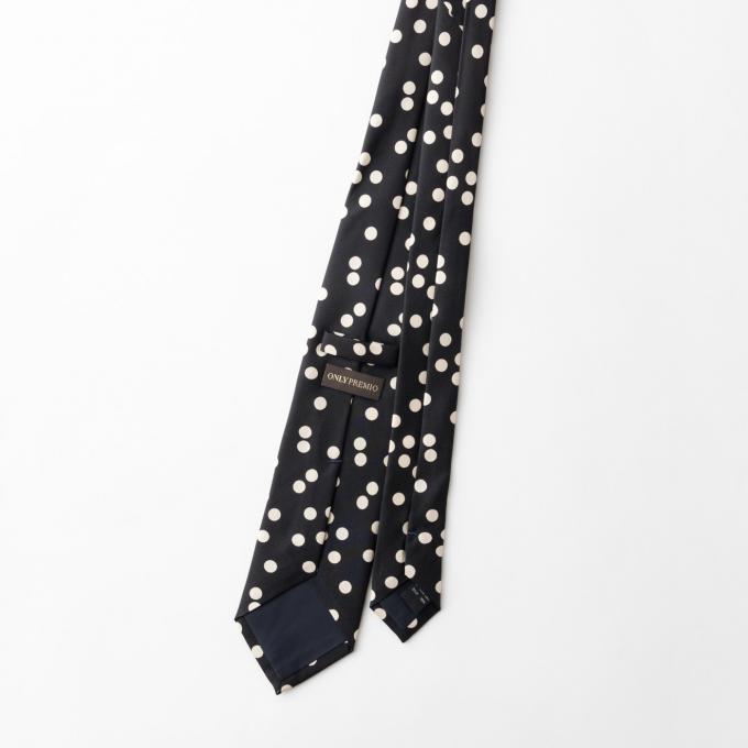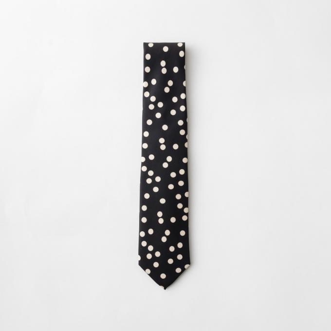 ブラックのボディに、ドット柄を配したネクタイ。