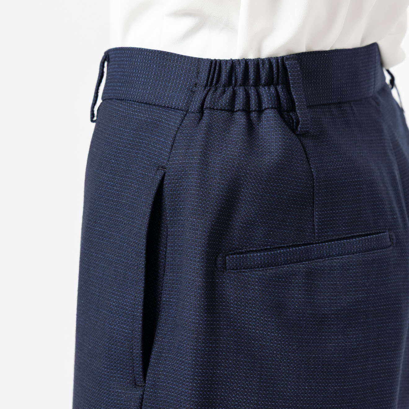 ポリエステルウールのホップサック生地は通気性に優れ、2WAYストレッチなので快適なはき心地です。