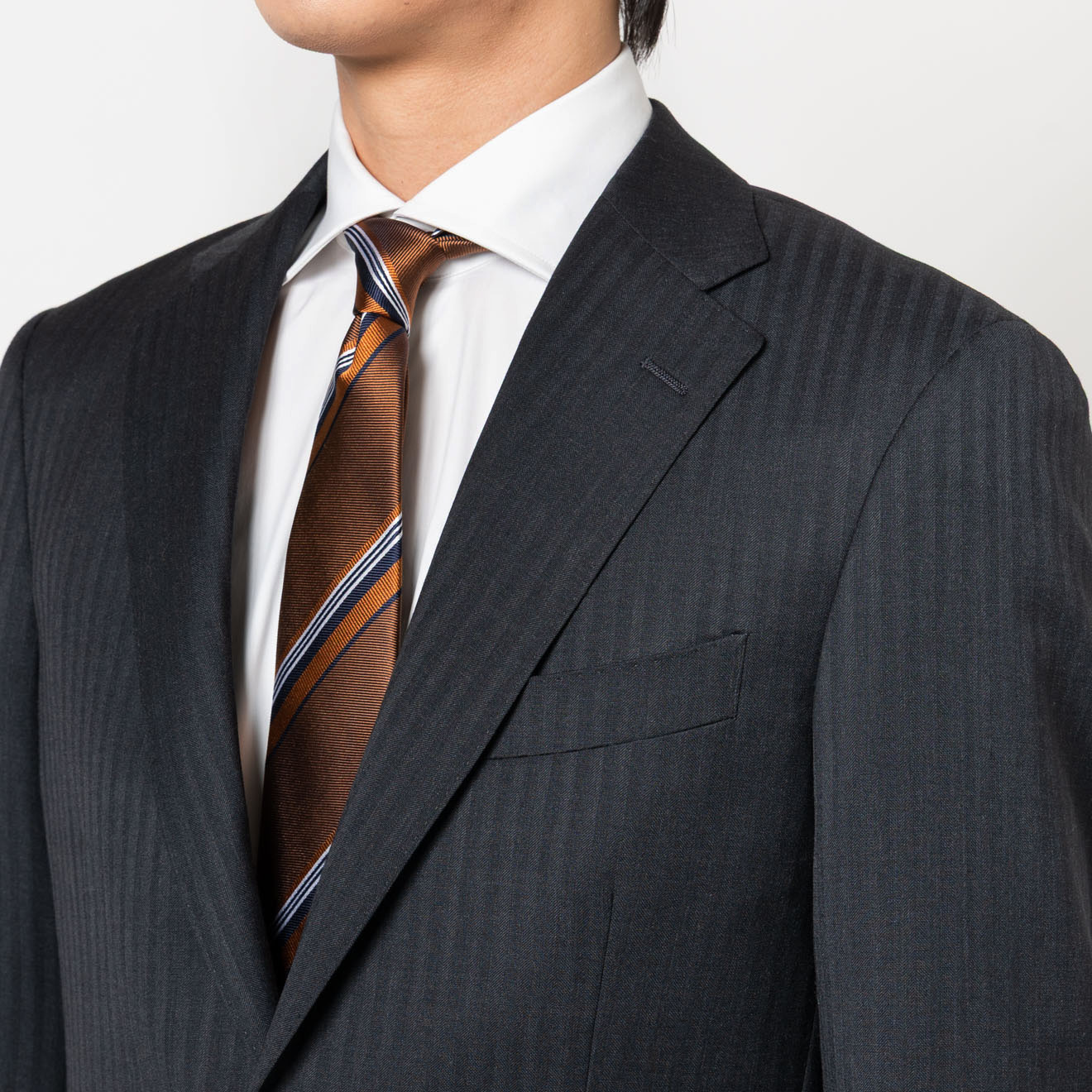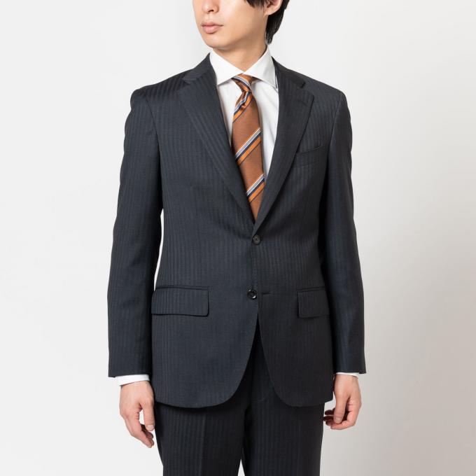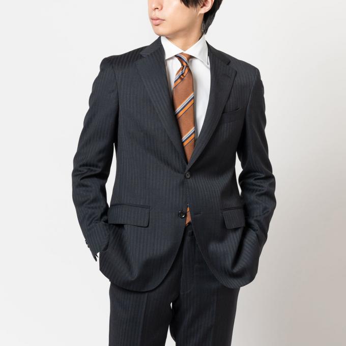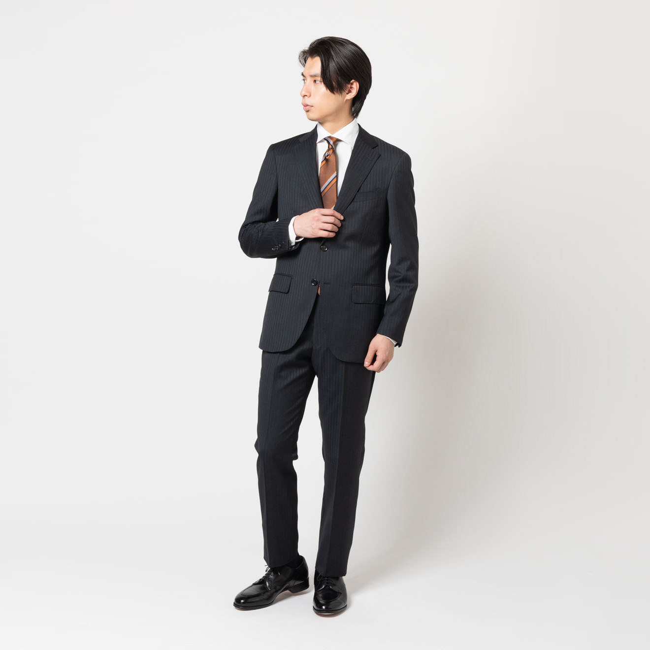 生地はビジネスシーンでの日常使いに耐えうる堅牢さを備えつつ、あえて太番手の原料を採用することで、豊かなハリとコシ、そして仕立て映えする立体感を追求。価格以上の上質さを実感できる一着です。