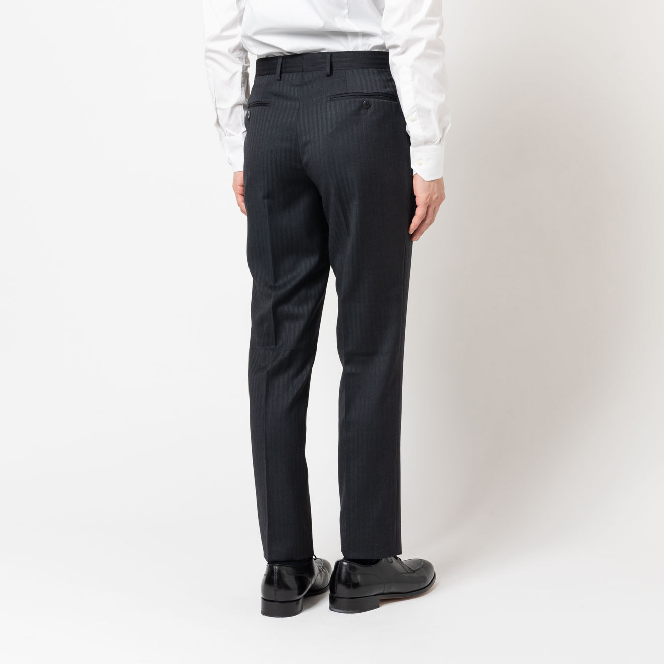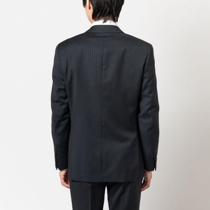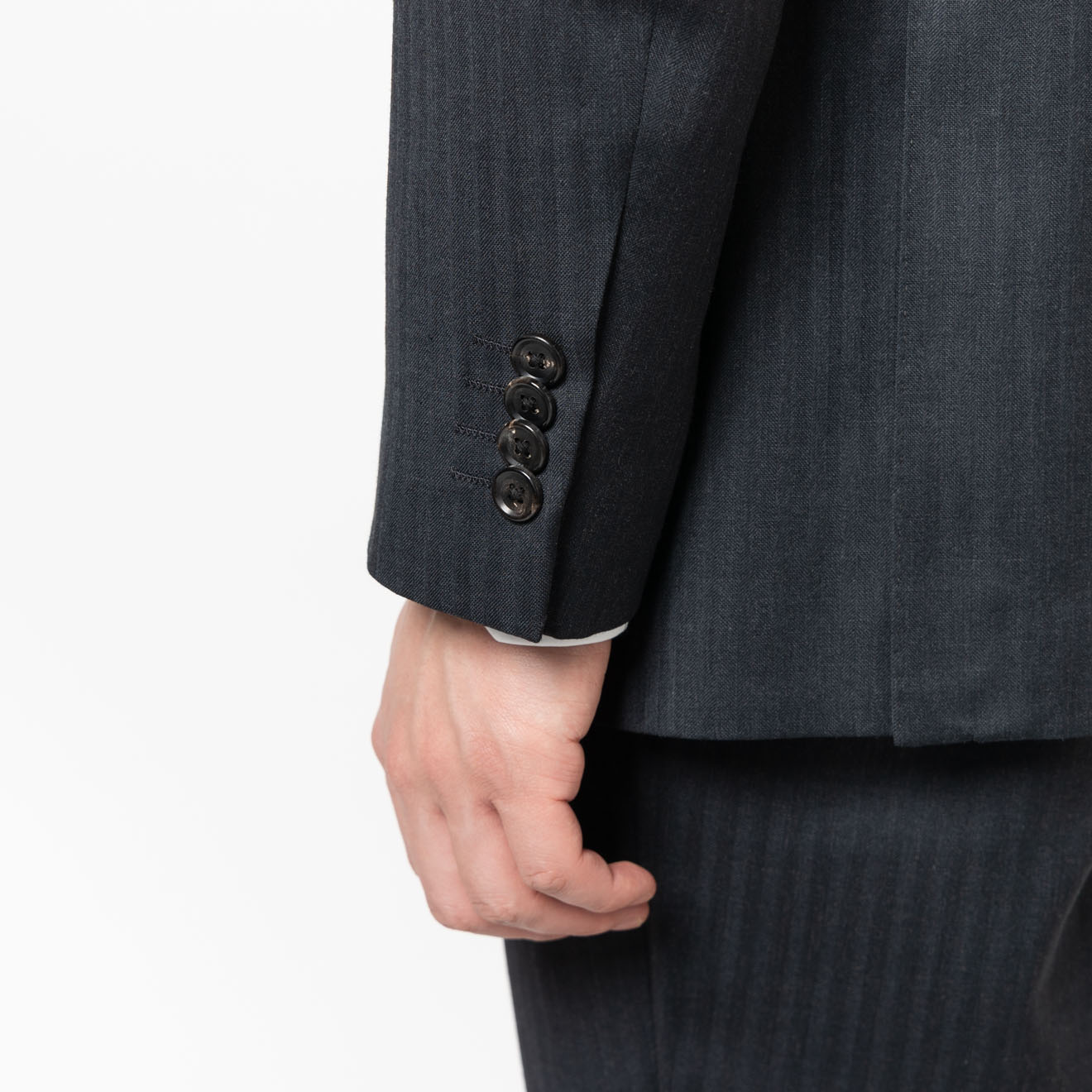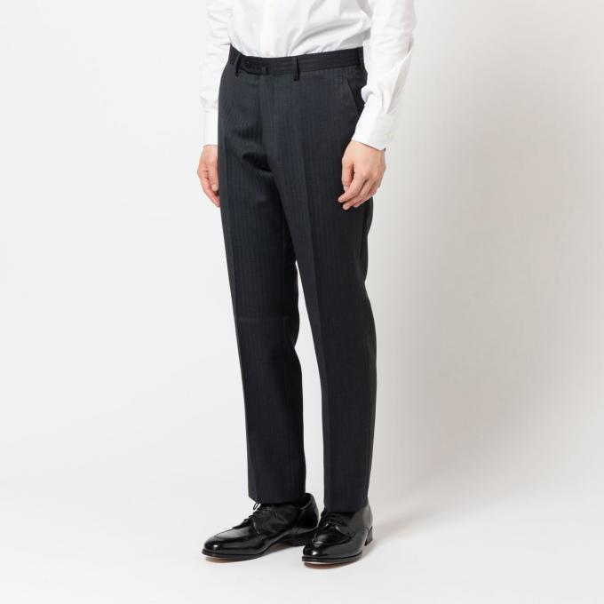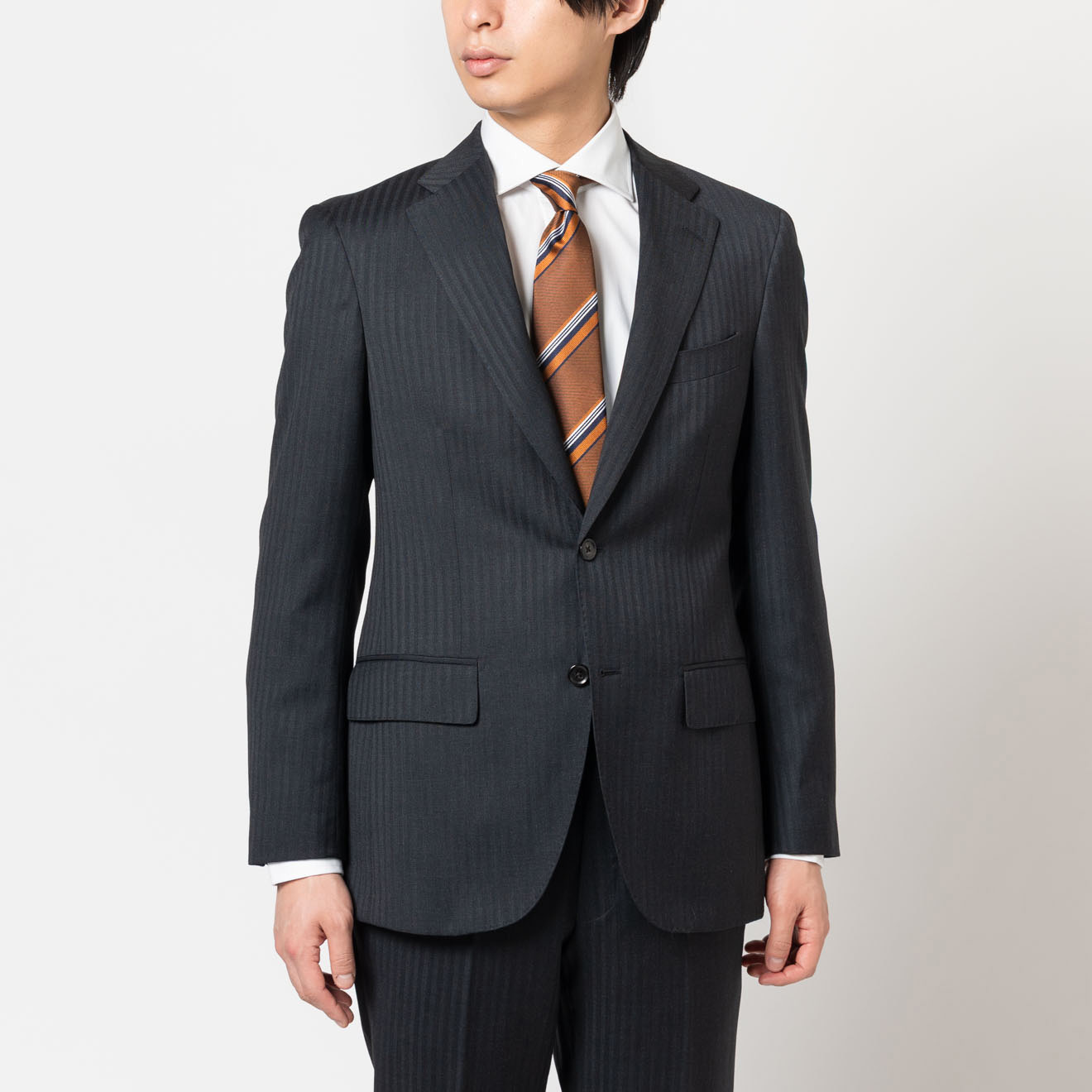 生地はビジネスシーンでの日常使いに耐えうる堅牢さを備えつつ、あえて太番手の原料を採用することで、豊かなハリとコシ、そして仕立て映えする立体感を追求。価格以上の上質さを実感できる一着です。