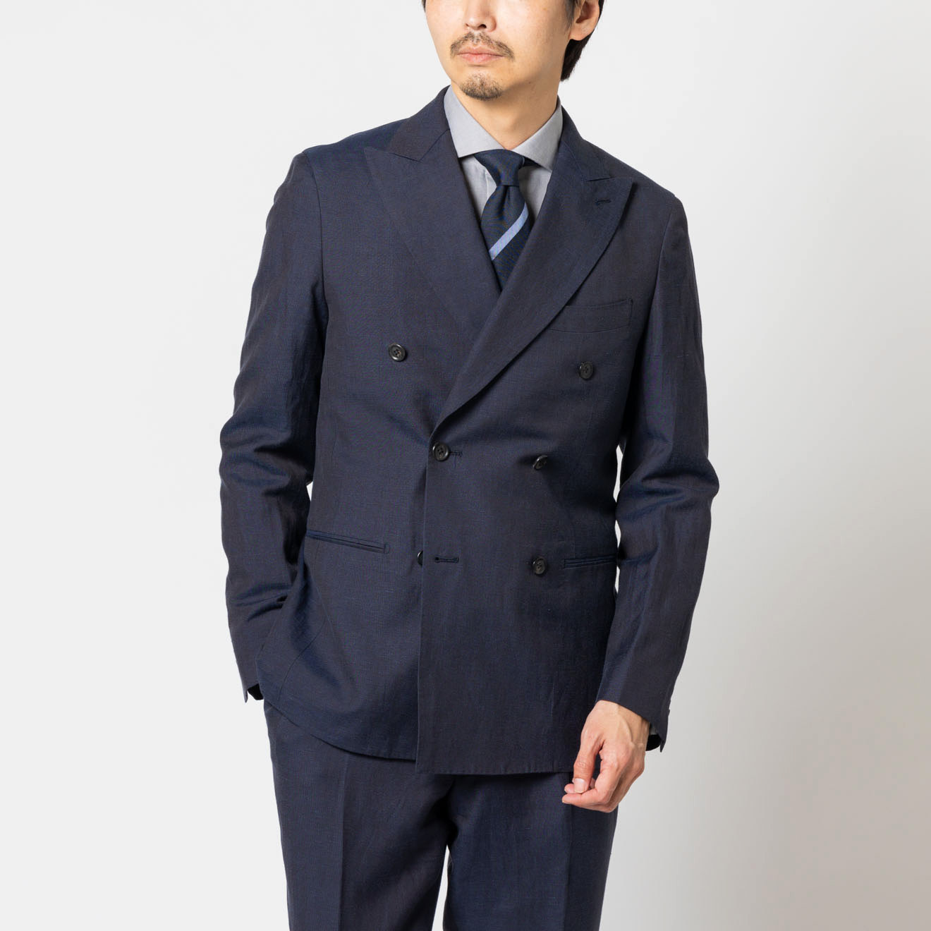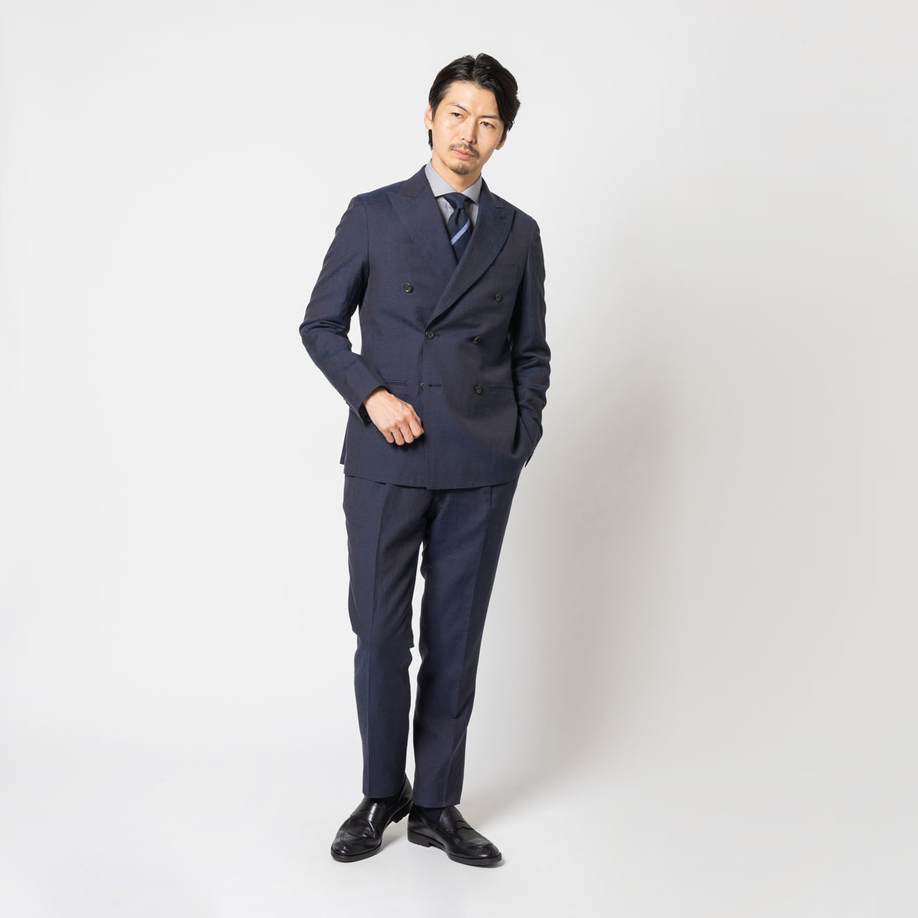 夏に映える上質な佇まいを楽しめる、完成度の高いダブルスーツに仕上げました。