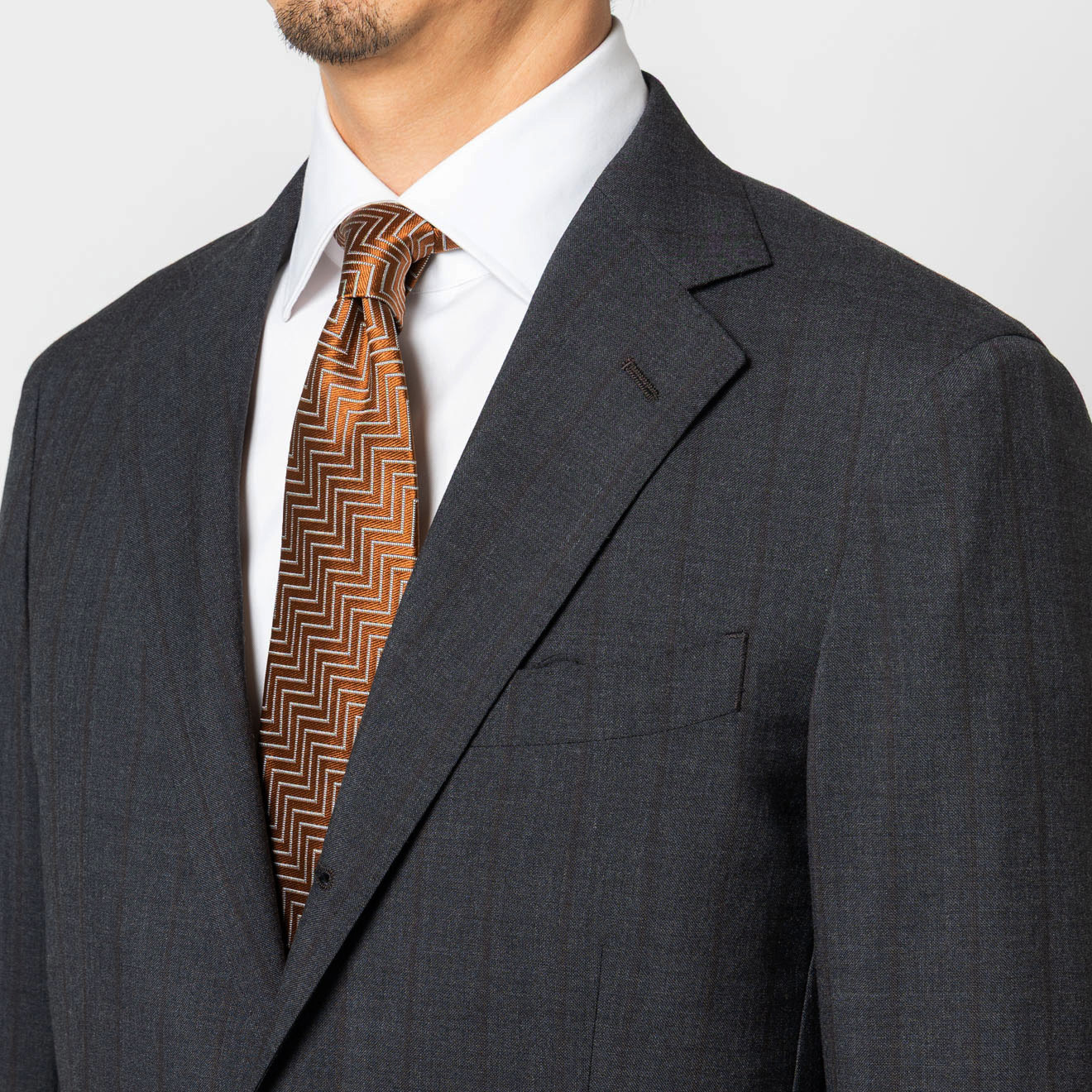 サンタルチアモデルはイタリア・ナポリのテーラーが生んだ艶やかで男らしいスタイルをベースに、日本人体型に合わせたモデル。
