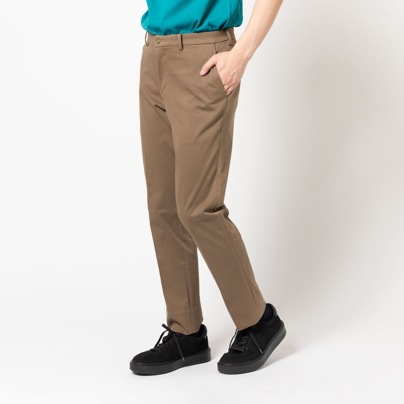 見た目は、コットンパンツなのに、実はジャージー。