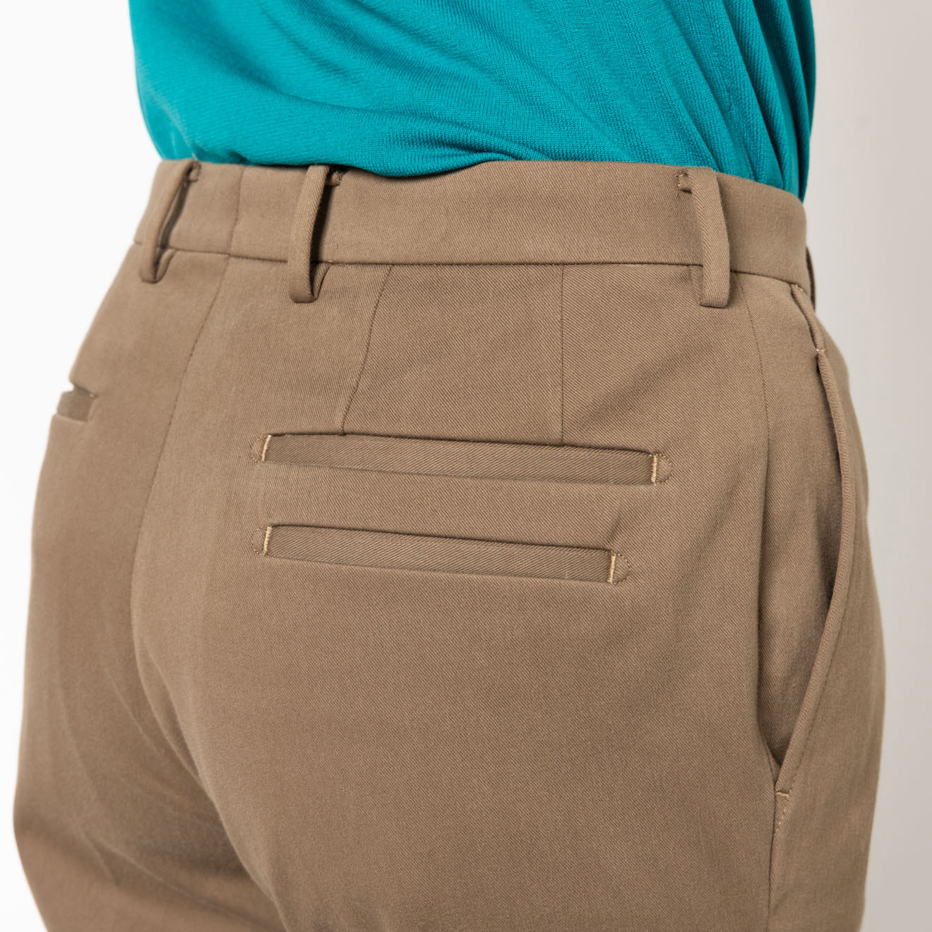 生地のストレッチを最大限生かしたウエストストレッチ機能、クリースも取れにくいインビジブル仕様に。