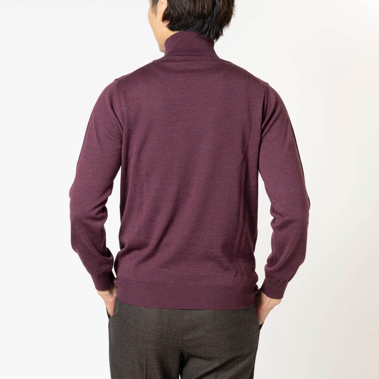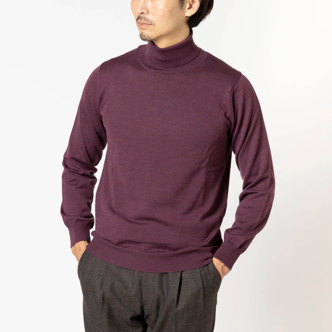 定番のタートルは、テーラードなスーツやジャケットに高相性。