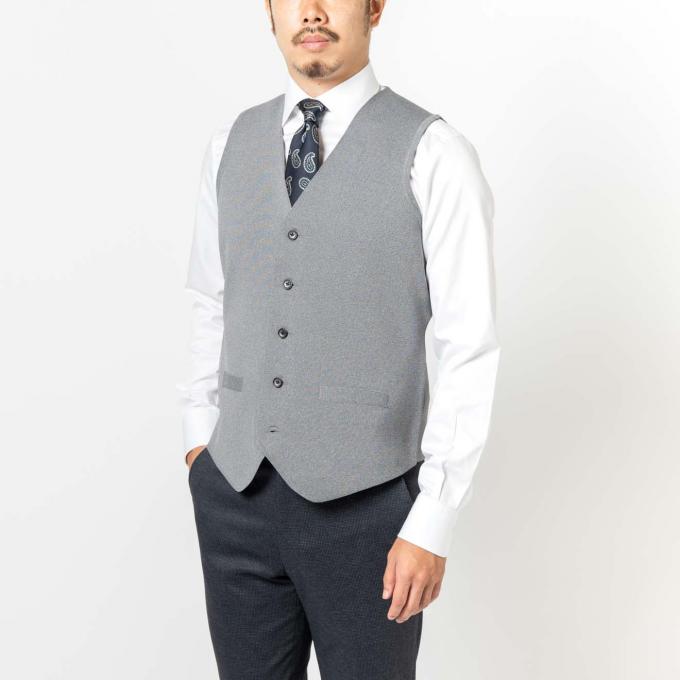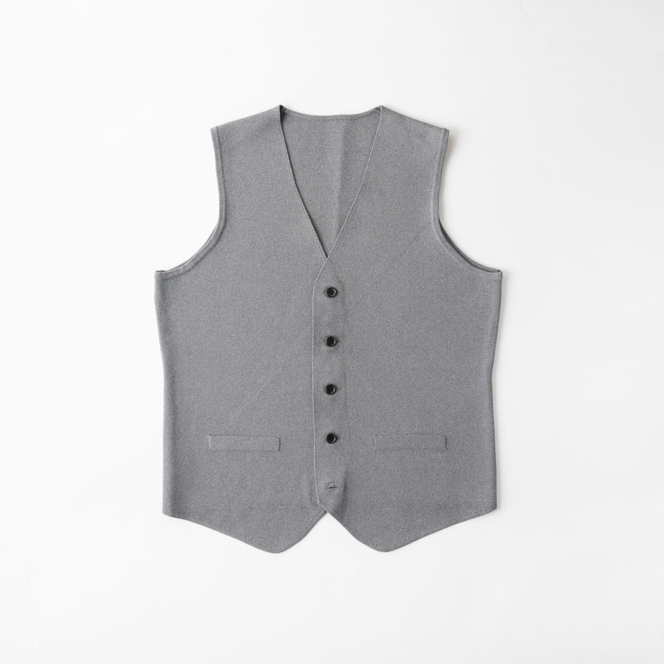 シャツの上にすっきりと重ねられる端正なシルエットで、スーツやジャケットとの親和性も抜群です。