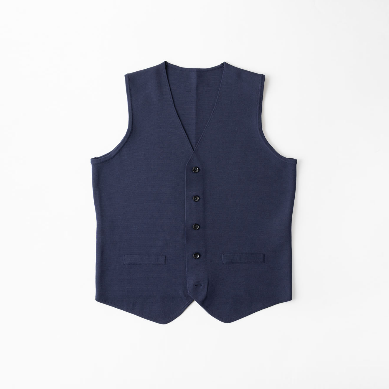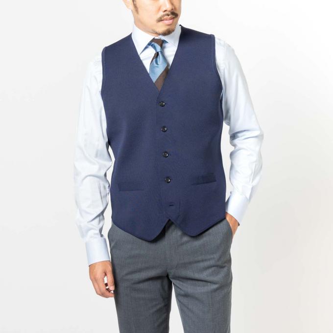シャツの上にすっきりと重ねられる端正なシルエットで、スーツやジャケットとの親和性も抜群です。