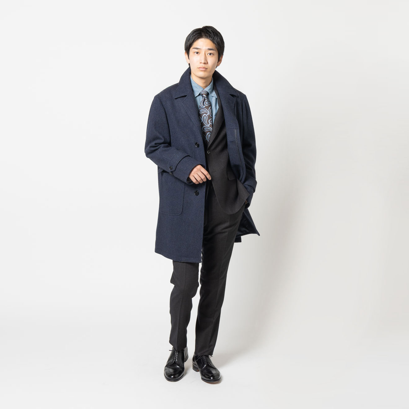 スーツの上から羽織るのはもちろん、カジュアルなスタイルにもマッチ。カラーは上品なネイビーのみの展開。
