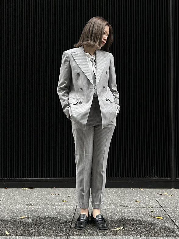 シンプルなピンストライプなどを着慣れた中級者向きの変形パターン。