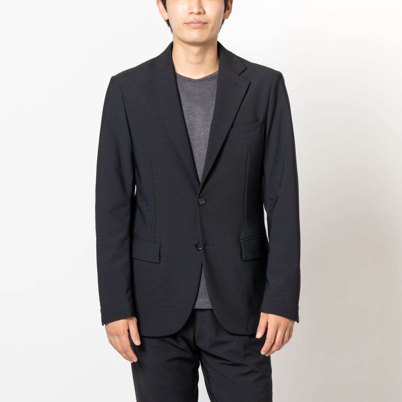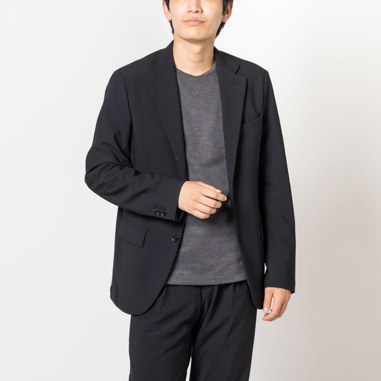 幅広いシーンで活躍する無地のジャージーセットアップジャケット。