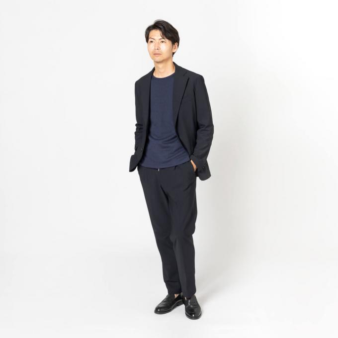 ストレッチライニングのボンディングに加え、素材感ある表情できちんとした佇まいです。