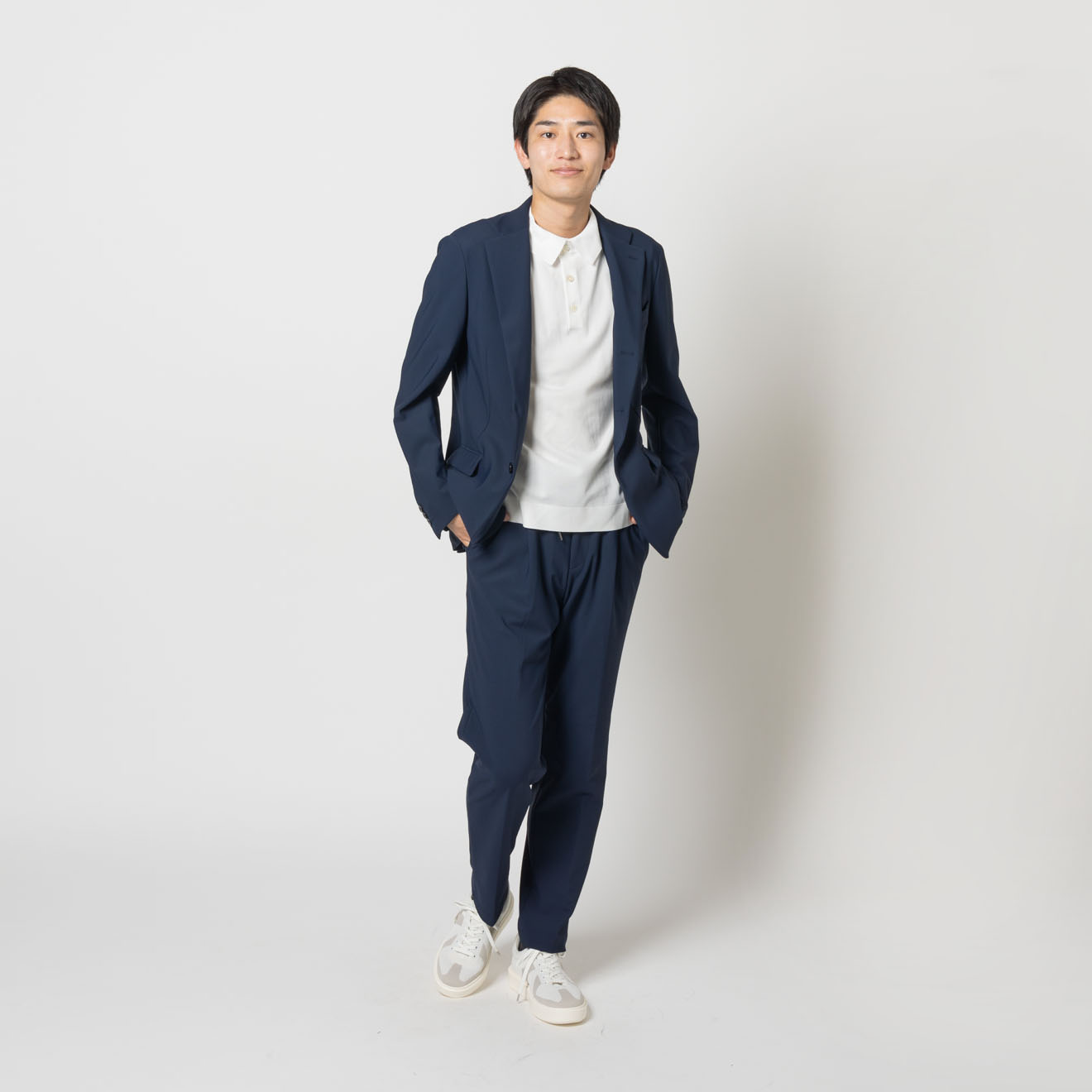 ストレッチライニングのボンディングに加え、素材感ある表情できちんとした佇まいです。