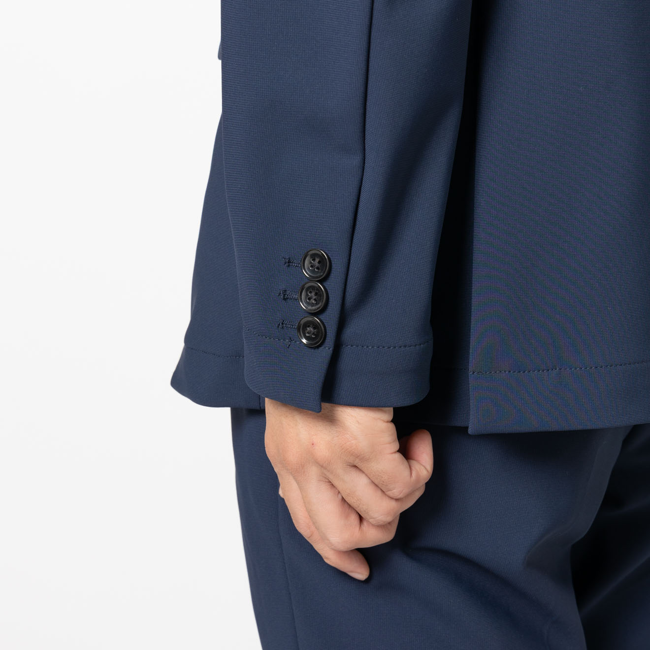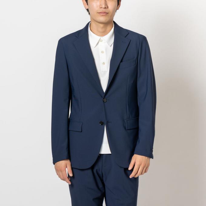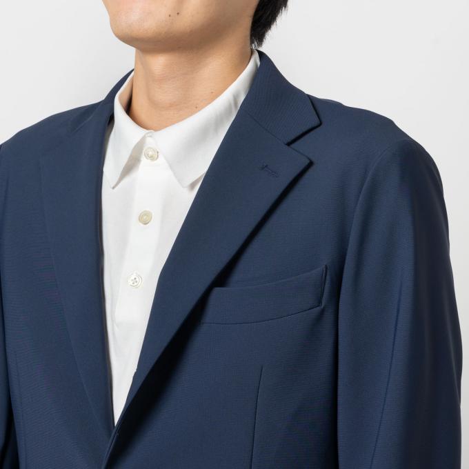 幅広いシーンで活躍する無地のジャージーセットアップジャケット。