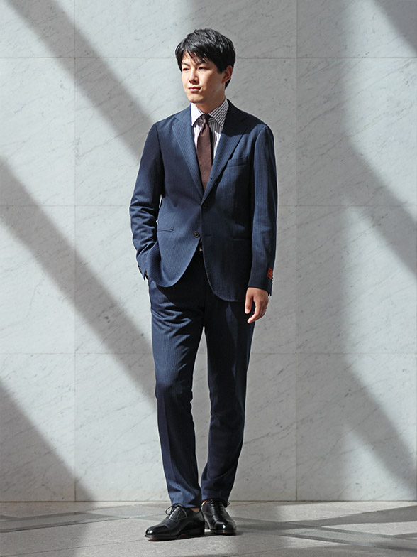13,200円以上の購入で送料無料 ONLY 1976 ライトメリノジャージー ネイビーストライプ ¥ 41,800 (税込) ONLY 1976 インポートやオリジナル生地でトレンド性をとらえたトレンドライン サイズ 44 46 48 50 52 在庫状況【選択しているサイズ】の在庫状況です。 前日までの店舗在庫が反映しております。 閉じる 閉じる 北海道関東東海・中部京都大阪・神戸中国・九州 閉じる 裾上げ(1本目) ※お直し料金は、シングル:1,100円(税込)/ダブル:1,650円(税込)にて承っております。 ※裾上げの直しをした場合、発送までに1週間前後お時間を頂戴いたします。 ※お直しした商品の返品・交換はできません。 ※裾上げ以外のお直しについては、実店舗にて承っておりますのでお近くの店舗へご来店ください。 股下丈 裾上げしない 48 49 50 51 52 53 54 55 56 57 58 59 60 61 62 63 64 65 66 67 68 69 70 71 72 73 74 75 76 77 78 79 80 81 82 仕上げ シングル ダブル(幅:3.5cm) ダブル(幅:4.0cm) ダブル(幅:4.5cm) サイズの測り方 数量 1 2 3 4 5 6 7 8 9 10 カートに入れる or 店舗試着 納期 : 翌営業日発送 お気に入りに追加 オンリーメンバーズ4つの会員特典 1 5%OFFクーポンプレゼント 2 年2回お買い上げ総額の7%をポイント還元 3 お誕生日の方はスーツ購入がお得 4 来店ごとに100円分のポイント加算(アプリのみ) 基本情報 アイテムサイズ ■シーズン 通年 ■商品説明 ジャージーの快適さと天然素材ウールの高級感を併せもつ、人気の「メリノジャージー」を軽やかに刷新。オールシーズン着用できる軽量性も備える逸品が今季新たに完成しました。 秋冬で大好評のメリノジャージーは起毛感があり、通年着用するには適さない生地でした。そのデメリットを克服した「ライトメリノジャージー」は、目付が約70グラムもの軽さを実現。 芯地類を用いない「サンタルチア ゼロ」モデルも相まって、驚きの軽さとロングシーズンに対応いたします。 ■モデル着用サイズ 身長180cm 体重70kg 着用サイズ48 各サイズ着用イメージはコチラから ■生地ブランド説明 ONLY1976 ビジネスシーンでのクラシックからトレンド性まで、リアルな提案から半歩先の提案までを表現した「MADE IN JAPAN」クオリティでの豊富なラインナップです。 ■生産国 MADE IN VIETNAM 色 ネイビー・ブルー系 柄 ストライプ 仕様 <サンタルチアゼロモデル> 南イタリア特有の柔軟な仕立てのスーツを日本人体型に合わせてアレンジした、大人気モデル「サンタルチア」をベースに、さらなる軽さを追求した新モデル。 肩パッド不使用のナチュラルな肩周り、さらに毛芯をなくし、オンリー史上最軽量の軽やかさで快適な着心地を実現。 <ジャケット> ノッチドラペル AMFコバ サイドベンツ シングル段返り3つ釦 フラップ有りポケット 袖4釦重ね仕様 背裏仕様:背抜き仕様 <パンツ> ワンタックスリムパンツ フロントボタン留め -INVISIBLE FUNCTION仕様- ・半永久クリース(折り目が取れにくい) ・ウエストストレッチ(可動域2cm?3cm) 素材 毛35%,ポリエステル35%,リヨセル30% 325g/m 品番 2-0344-73-403_NY/ストライプ ※商品には個体差がある場合がございます。 <サンタルチアゼロモデル> ■ジャケット 44サイズ:肩幅43.5cm バスト97cm ウエスト88cm 袖丈59.5cm 着丈70.5cm 46サイズ:肩幅44.5cm バスト101cm ウエスト92cm 袖丈61cm 着丈71.5cm 48サイズ:肩幅45.5cm バスト105cm ウエスト96cm 袖丈62.5cm 着丈72.5cm 50サイズ:肩幅46.5cm バスト109cm ウエスト100cm 袖丈64cm 着丈73.5cm 52サイズ:肩幅47.5cm バスト113cm ウエスト104cm 袖丈65cm 着丈74.5cm ■パンツ 44サイズ:ウエスト76cm 股上22.5cm わたり幅30.5cm 裾幅17.5cm 46サイズ:ウエスト80cm 股上23.5cm わたり幅32cm 裾幅18cm 48サイズ:ウエスト84cm 股上24cm わたり幅33.5cm 裾幅18.5cm 50サイズ:ウエスト88cm 股上24.5cm わたり幅34.5cm 裾幅19cm 52サイズ:ウエスト92cm 股上25cm わたり幅35.5cm 裾幅19.5cm カートに入れる or 店舗試着 納期 : 翌営業日発送 お気に入りに追加 この商品のスタイリング 身長 185cm / サイズ 48 静岡駅前店