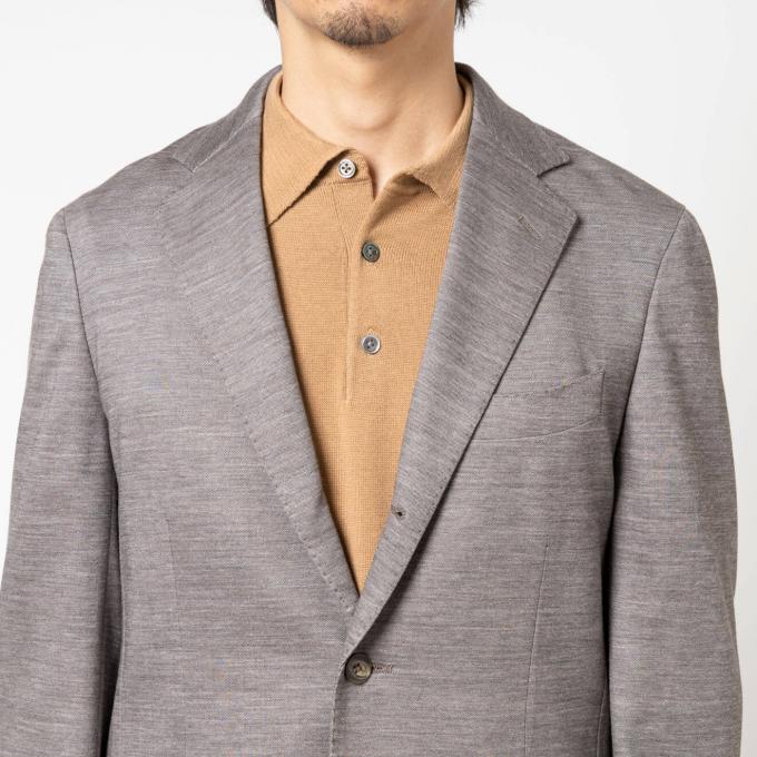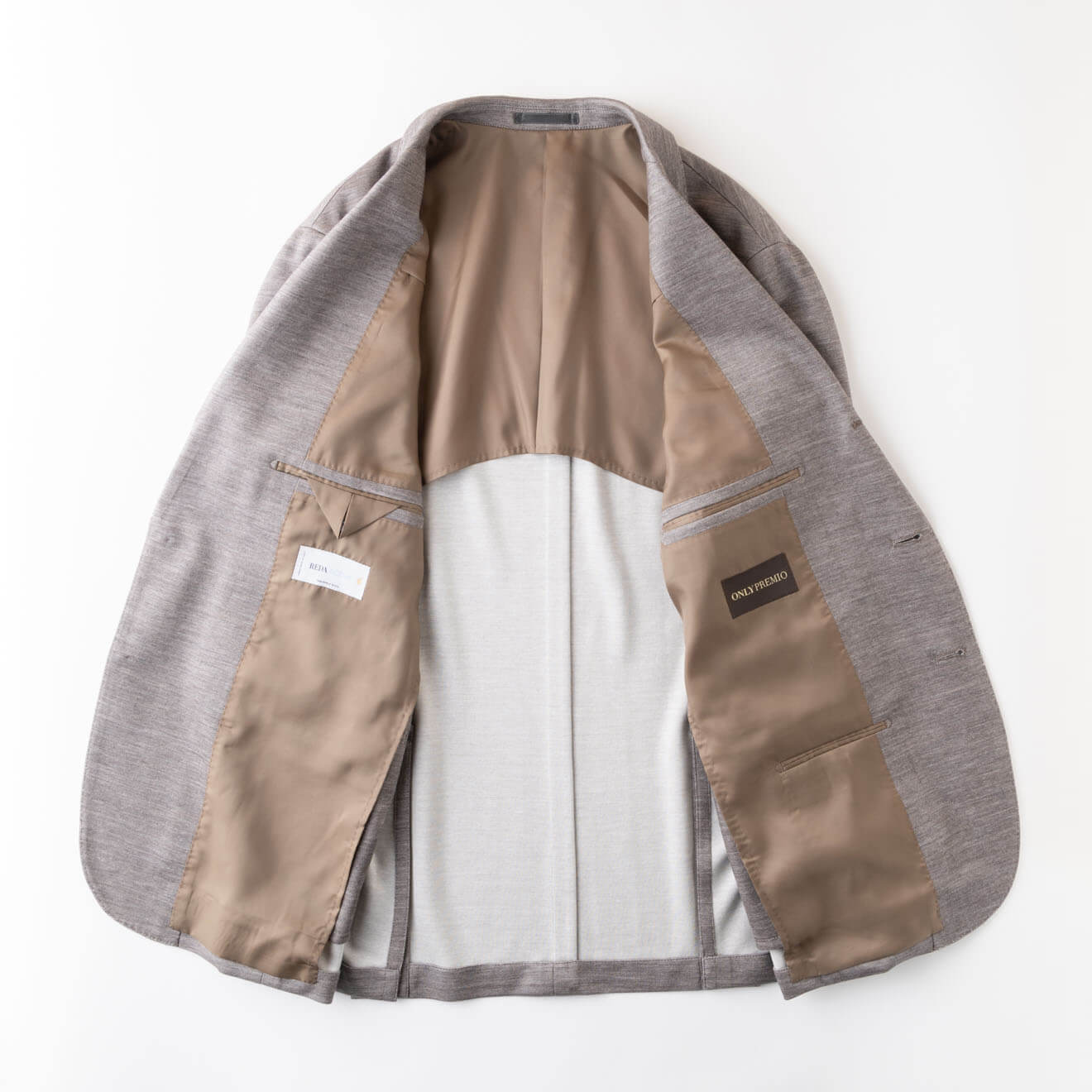 肩パッド不使用のナチュラルな肩周り、さらに毛芯をなくし、オンリー史上最軽量の軽やかさで快適な着心地を実現。