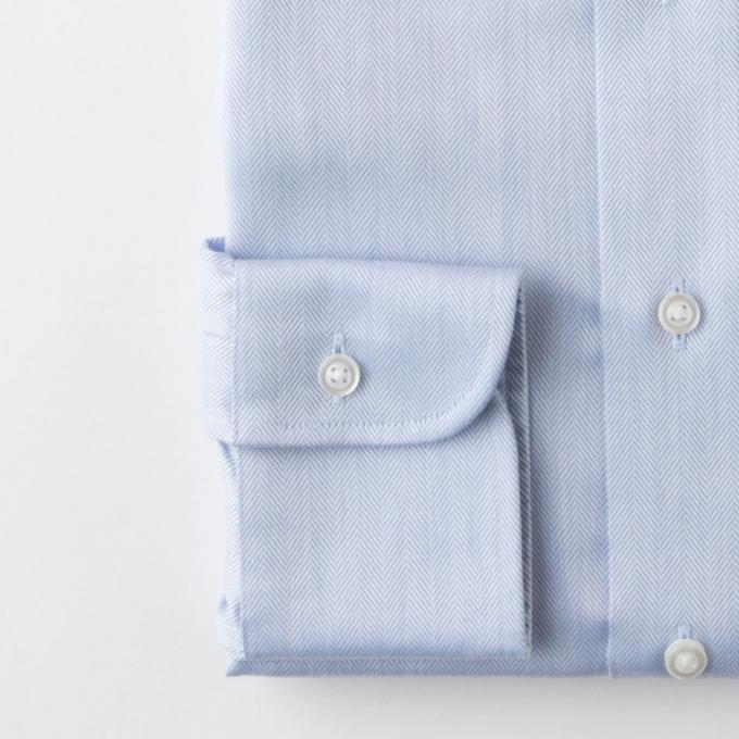 ボタンは強度に優れた耐圧釦を使用し、胸ポケットも付けたデイリーユースに適したドレスシャツです。
