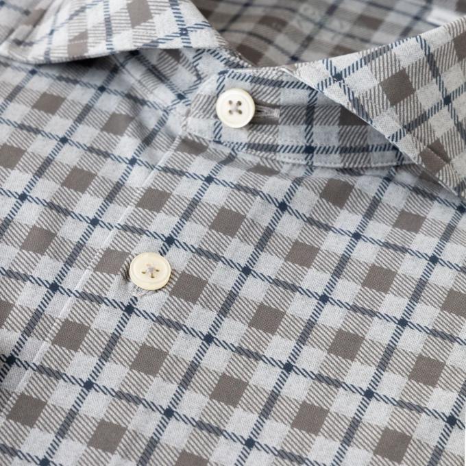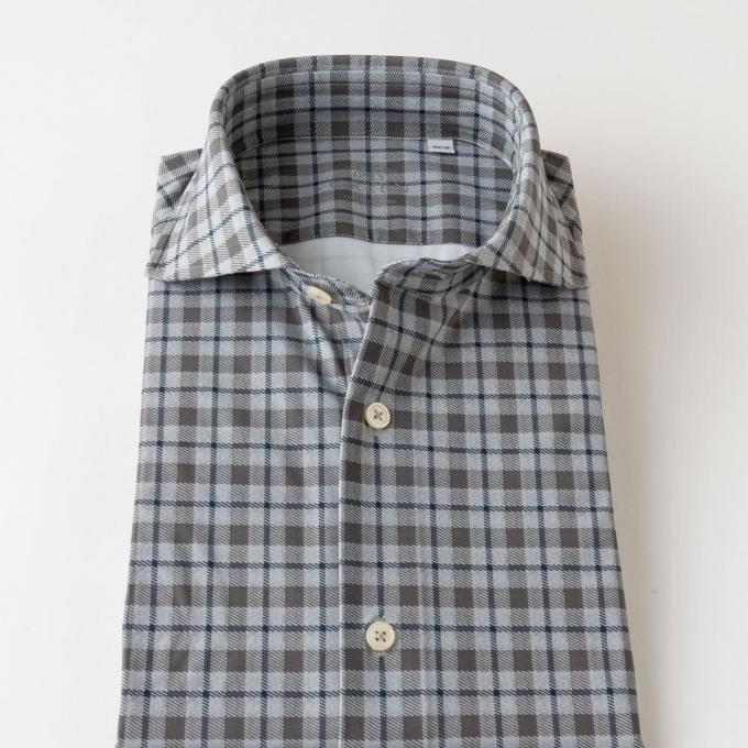 通常のシャツ生地とは異なり、オンリー グリーンのシャツはナイロン生地のため非常に滑りやすく、縫製が難しいのです。そのため縫製はイタリアの高級シャツブランドも使用するファクトリーにて生産しています。それにより立体的な衿の形状や細やかな縫製を可能にしています。