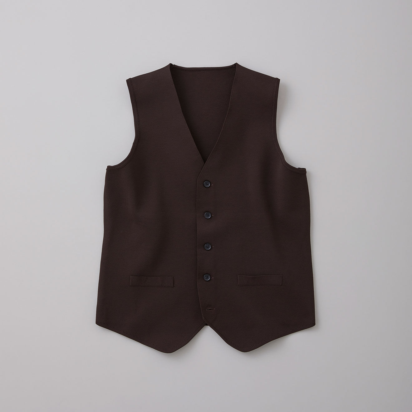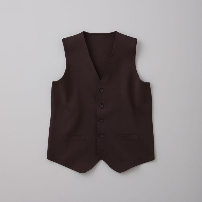 シャツの上にすっきりと重ねられる端正なシルエットで、スーツやジャケットとの親和性も抜群です。