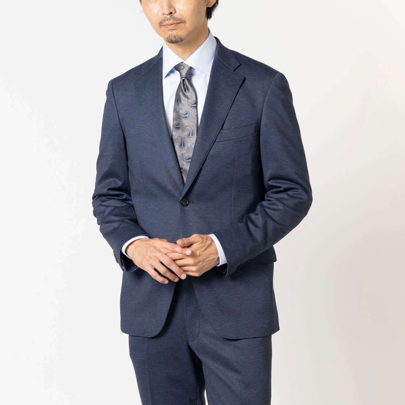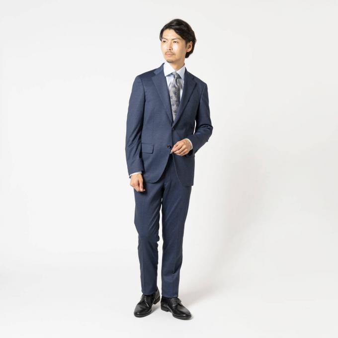同素材の共生地パンツと併せてスーツ(2パンツも可)スタイル