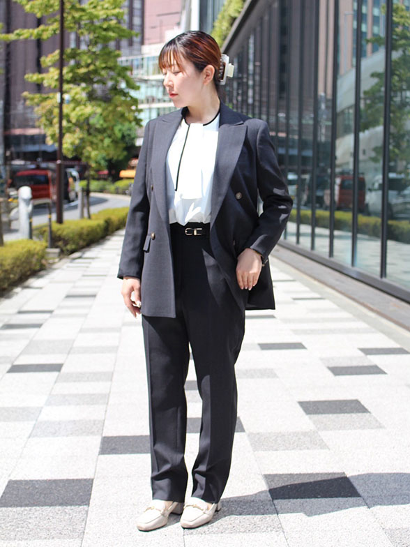 ナチュラルなストレッチ感がありつつ、TRAVEL生地でシワになりにくさも兼ね備えています。