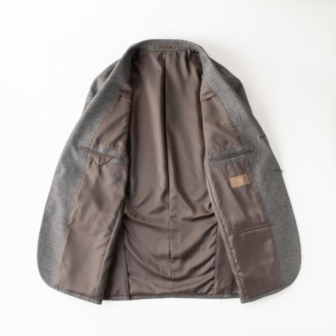 肩パッド不使用のナチュラルな肩周り、さらに毛芯をなくし、オンリー史上最軽量の軽やかさで快適な着心地を実現。