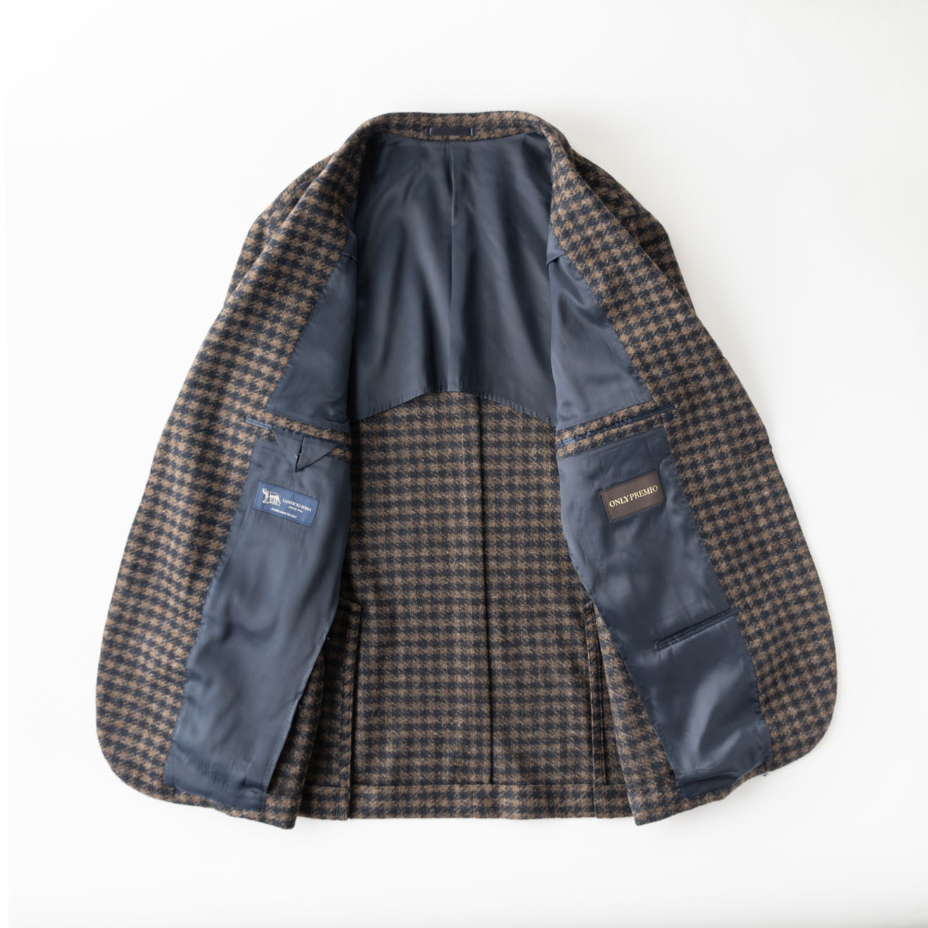 肩パッド不使用のナチュラルな肩周り、さらに毛芯をなくし、オンリー史上最軽量の軽やかさで快適な着心地を実現。
