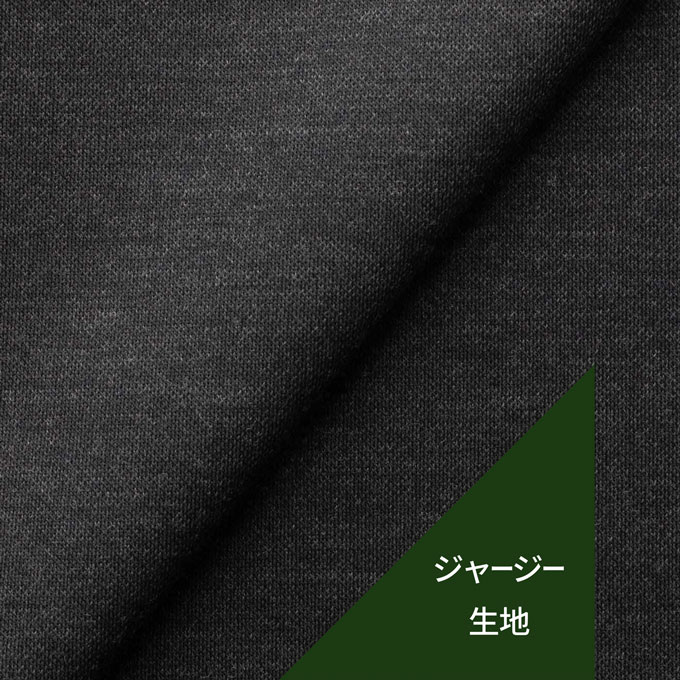 ドラゴ社と日本の尾州のコラボレーションによる素材開発で、ジャージ素材としては伸びすぎず、寸法変化も安定している為、品質面と縫製面においても長く着用頂ける生地です。