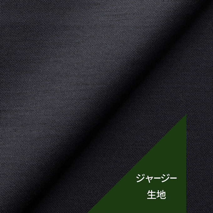 ドラゴ社と日本の尾州のコラボレーションによる素材開発で、ジャージ素材としては伸びすぎず、寸法変化も安定している為、品質面と縫製面においても長く着用頂ける生地です。