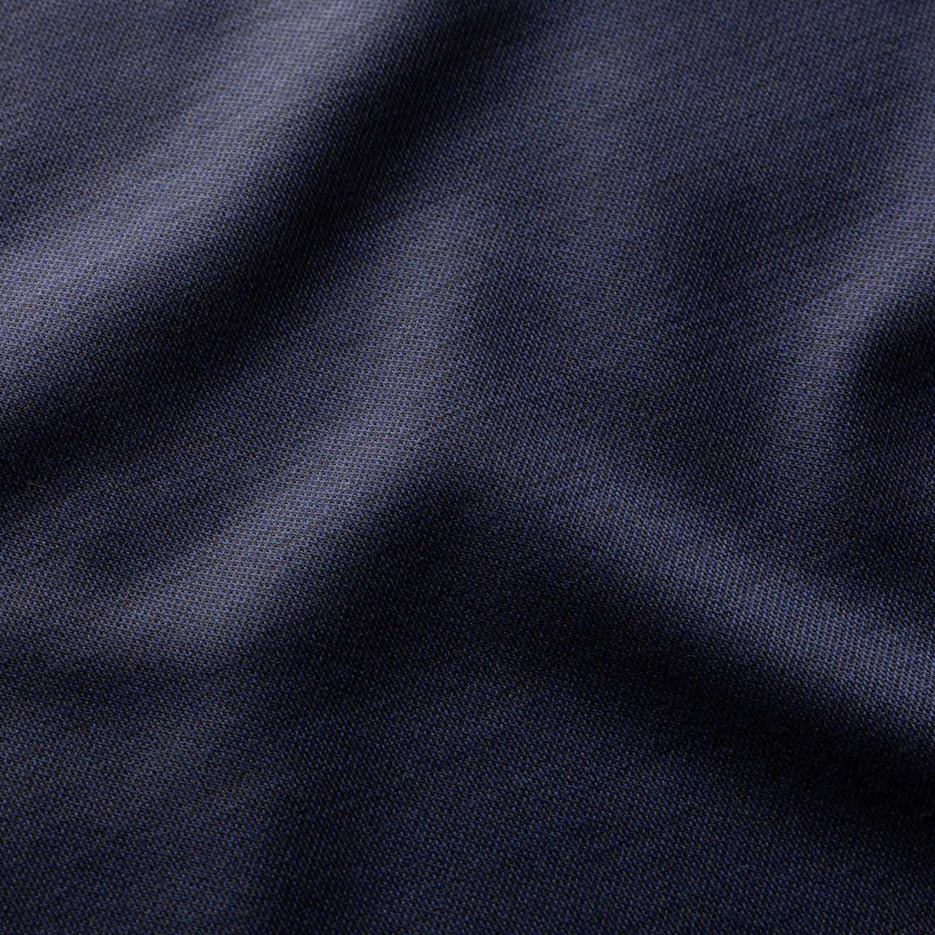 光沢となめらかさがあると同時に、ウール高混率によるラグジュアリー性を持ち合わせたジャージー素材。弾力性があり、ストレスのない着心地が特徴的で、年間を通して着用が可能。
