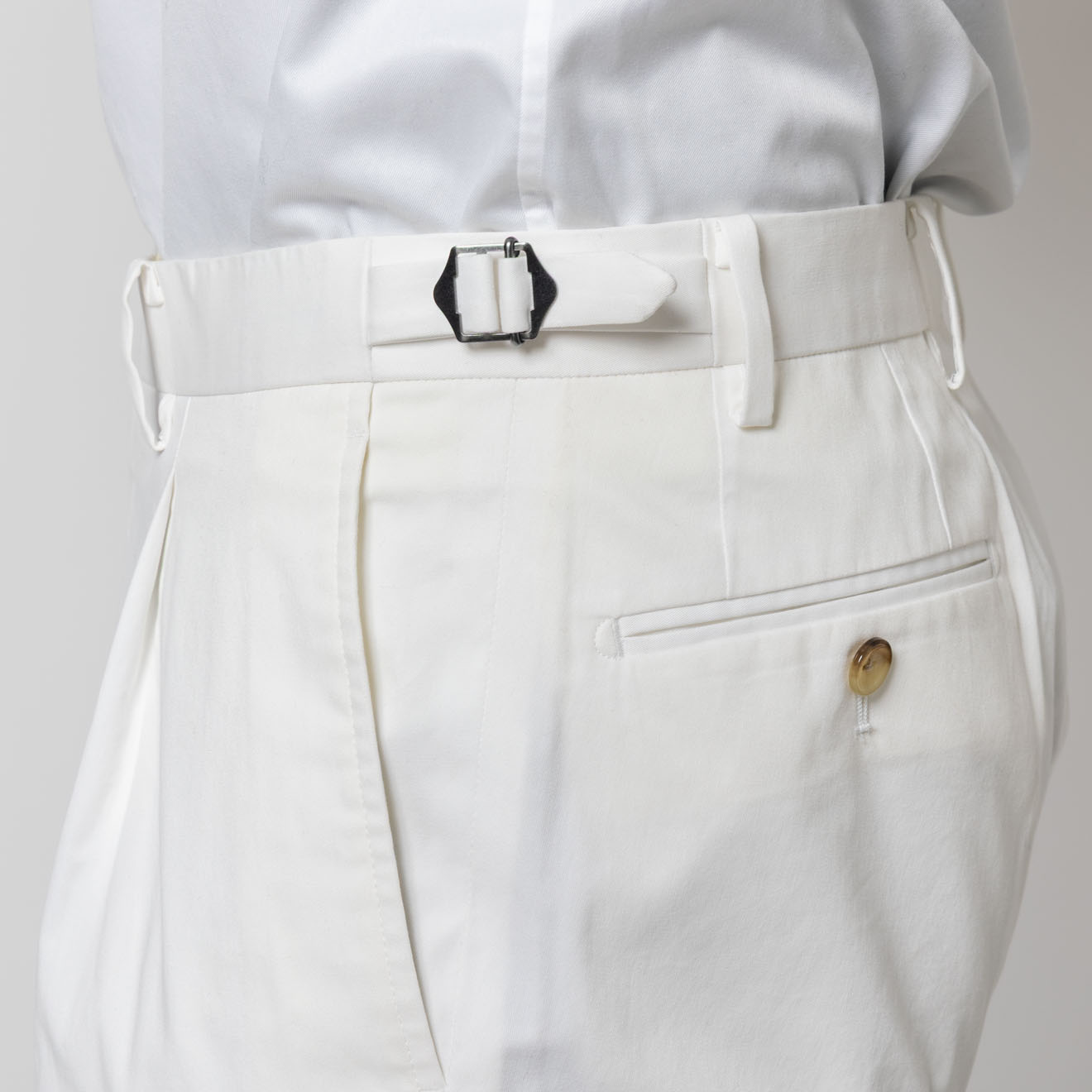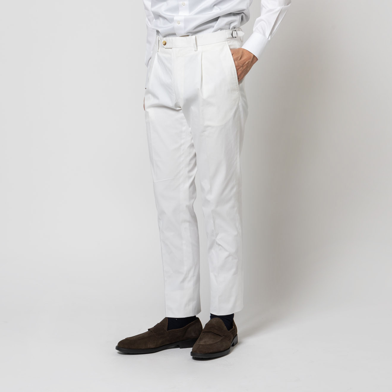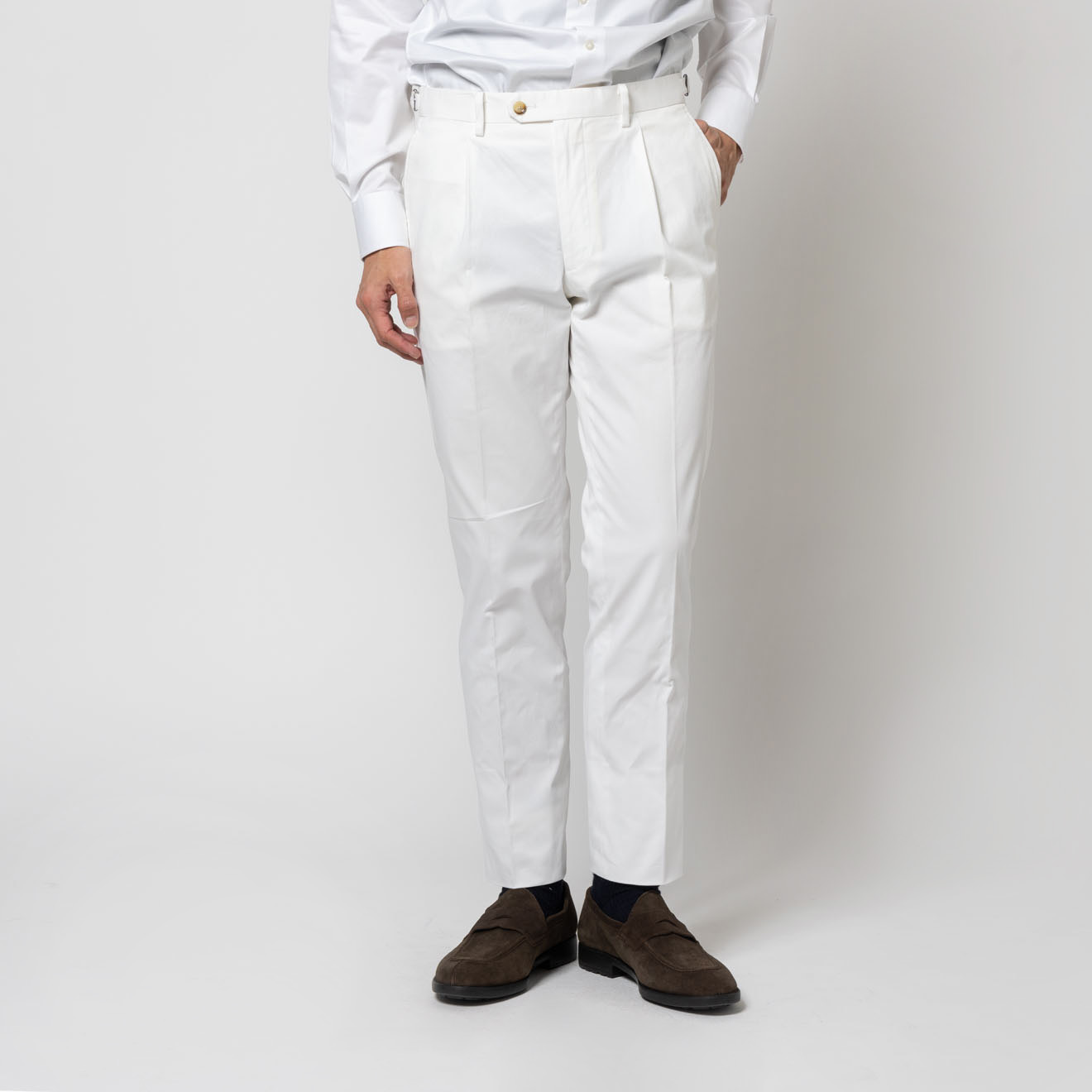 13,200円以上の購入で送料無料 ONLY PREMIO 伊ビスコンティ社 コットン ワンタックパンツ ホワイト ¥ 19,800 (税込) ONLY PREMIO ほかにはない、本物志向に向けたクラシックライン サイズ 44 46 48 50 在庫状況【選択しているサイズ】の在庫状況です。 前日までの店舗在庫が反映しております。 閉じる 閉じる 北海道関東東海・中部京都大阪・神戸中国・九州 閉じる 裾上げ(1本目) ※お直し料金は、シングル:1,100円(税込)/ダブル:1,650円(税込)にて承っております。 ※裾上げの直しをした場合、発送までに1週間前後お時間を頂戴いたします。 ※お直しした商品の返品・交換はできません。 ※裾上げ以外のお直しについては、実店舗にて承っておりますのでお近くの店舗へご来店ください。 股下丈 裾上げしない 48 49 50 51 52 53 54 55 56 57 58 59 60 61 62 63 64 65 66 67 68 69 70 71 72 73 74 75 76 77 78 79 80 81 82 仕上げ シングル ダブル(幅:3.5cm) ダブル(幅:4.0cm) ダブル(幅:4.5cm) サイズの測り方 数量 1 2 3 4 5 6 7 8 9 10 カートに入れる or 店舗試着 納期 : 翌営業日発送 お気に入りに追加 オンリーメンバーズ4つの会員特典 1 5%OFFクーポンプレゼント 2 年2回お買い上げ総額の7%をポイント還元 3 お誕生日の方はスーツ購入がお得 4 来店ごとに100円分のポイント加算(アプリのみ) 基本情報 アイテムサイズ ■シーズン 春夏 ■商品説明 イタリア・ミラノ近郊で1800年代から続く老舗ミル DUCA VISCONTI社のファブリックを使用。 長年培われた生地づくりの技術を背景に、 コットンを中心とした豊かな表情と、上質な風合いを生み出すことで知られる名門メーカーです。 今季は、スポーティーでマットな質感が魅力のコットン素材をセレクト。 ナチュラルな表情の中に程よい品の良さがあり、 カジュアルにもドレスにも馴染む、汎用性の高い一本に仕上げました。 尾錠仕様のクラシックなディテールが、ウエストまわりにアクセントをプラス。 さらにストレッチ性も備え、見た目の端正さとは裏腹に、快適な履き心地を実現しています。 カラーはホワイト・ベージュ・グリーンの3色展開。 季節感のある着こなしを楽しめる、ワードローブに加えたいインポートパンツです。 ■モデル着用サイズ 身長182cm 体重70kg 着用サイズ48 ■生地ブランド説明 Duca Visconti 1838年にイタリア初のコットン・ミルとして創業。 最先端テクノロジーを投入、厳選された原料のみを使用し、マーケットの動きに注視しながら、ファッショントレンドに即した色柄・素材を提案しています。 ■生産国 MADE IN VIETNAM 色 ホワイト 柄 無地 仕様 サイド尾錠付き フロントボタン留め 素材 綿98%,ポリウレタン2% 品番 3-0344-11-012_WHI/無地 ※商品には個体差がある場合がございます。 44サイズ:ウエスト76cm 股上22.5cm わたり幅30.5cm 裾幅17.5cm 46サイズ:ウエスト80cm 股上23.5cm わたり幅32cm 裾幅18cm 48サイズ:ウエスト84cm 股上24cm わたり幅33.5cm 裾幅18.5cm 50サイズ:ウエスト88cm 股上24.5cm わたり幅34.5cm 裾幅19cm 52サイズ:ウエスト92cm 股上25cm わたり幅35.5cm 裾幅19.5cm カートに入れる or 店舗試着 納期 : 翌営業日発送 お気に入りに追加 この商品のスタイリング この商品のスタイリングはまだ登録されていません。