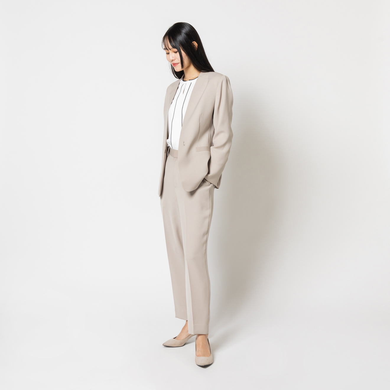 パンツはテーパードとワイドの2種、スカートは1種をご用意。また同生地でダブルブレストジャケットも展開しています。