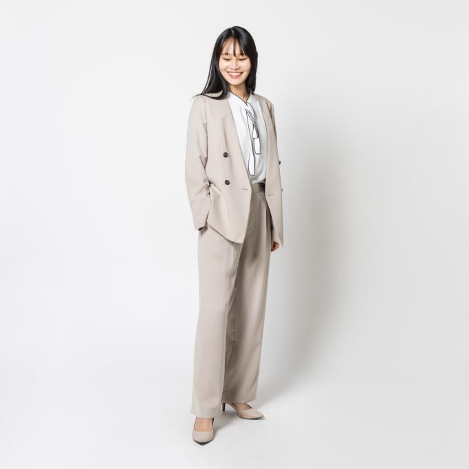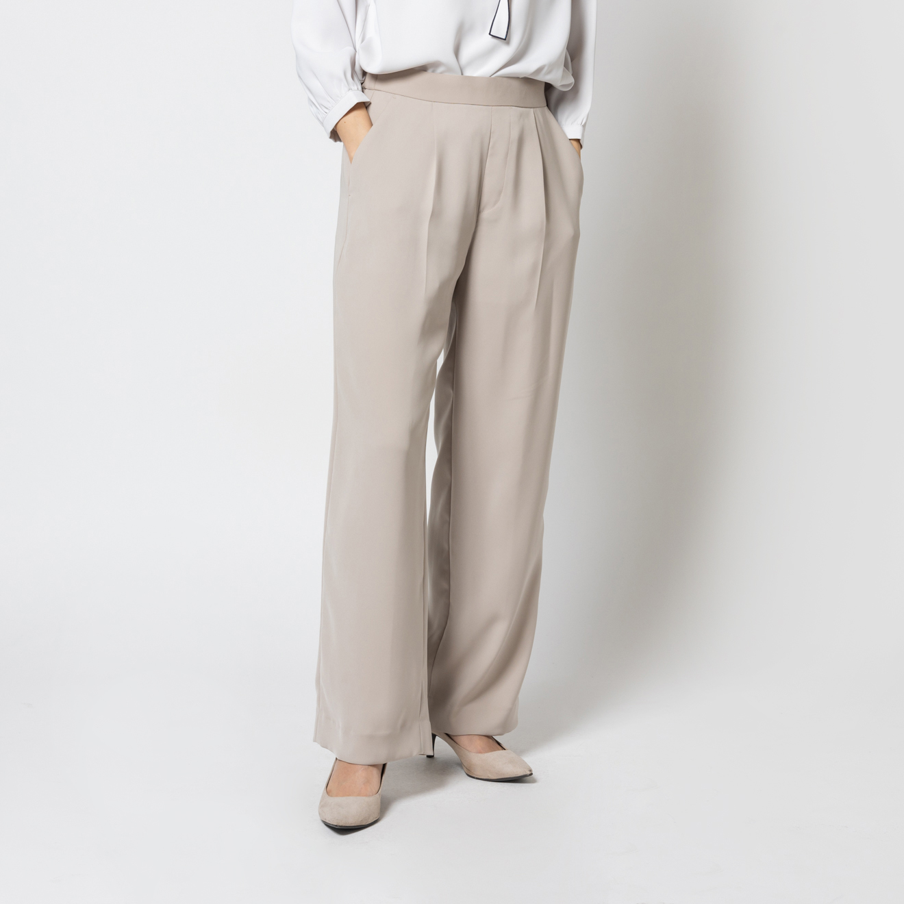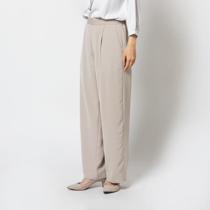 ONLY 【入荷待ち】ワンタックストレッチワイドパンツ ベージュ無地