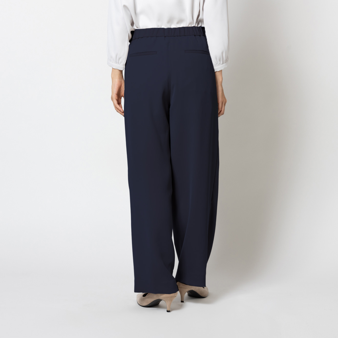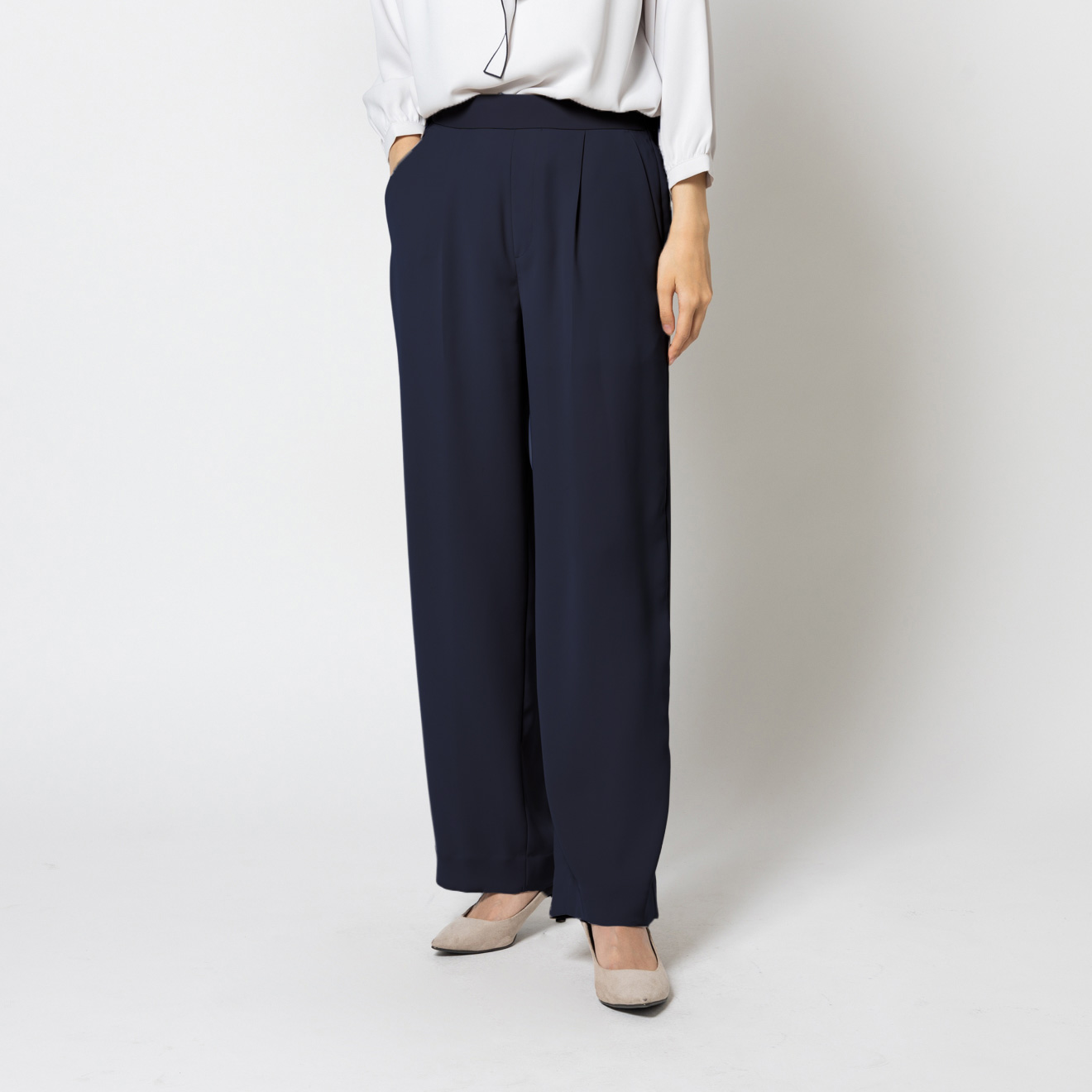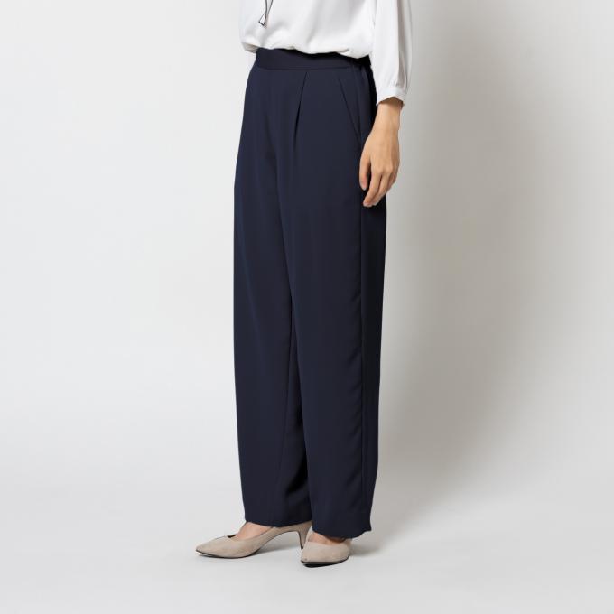ONLY 【入荷待ち】ワンタックストレッチワイドパンツ ネイビー無地
