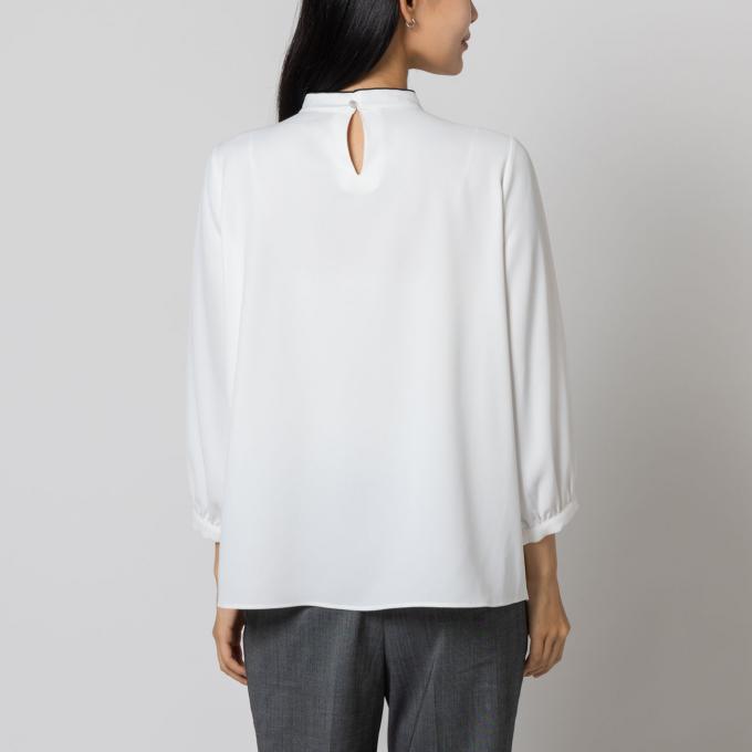 七分袖仕様により、軽やかさときちんと感を両立し、ジャケットのインナーとしても使いやすいデザインです。