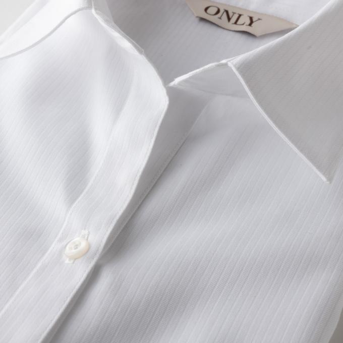 端正なレギュラーカラーとのコントラストが、甘さを抑えた上品な印象を演出します。