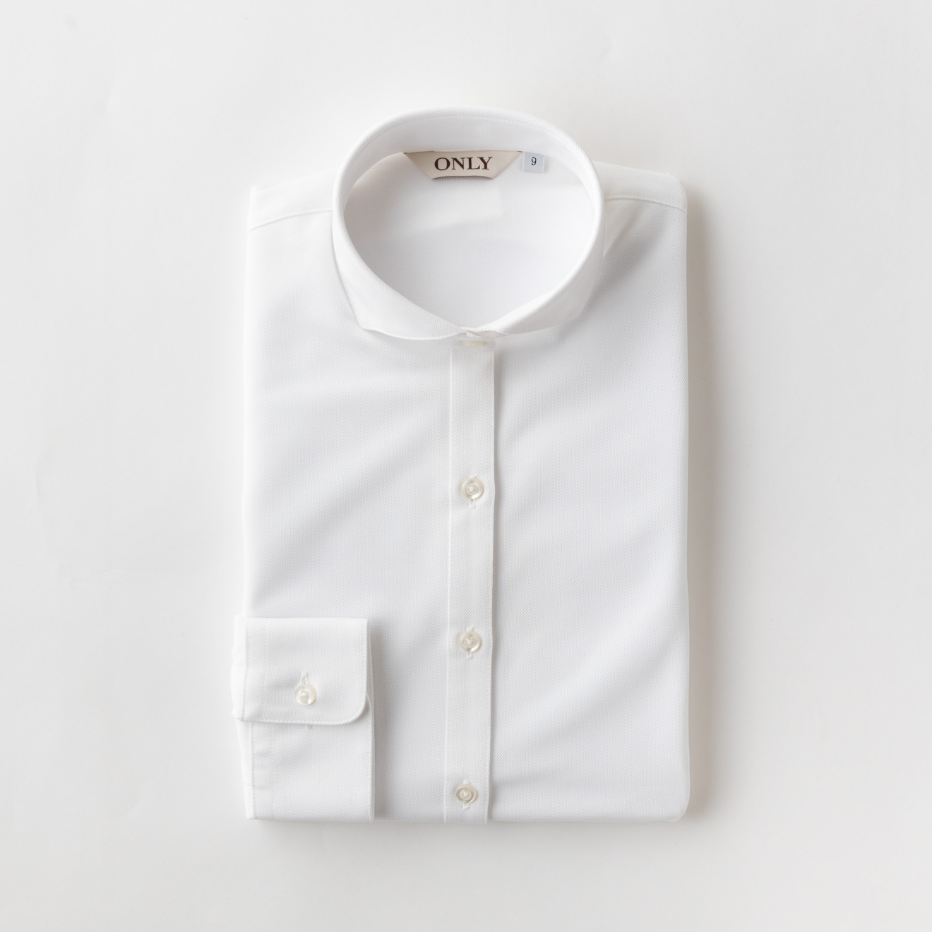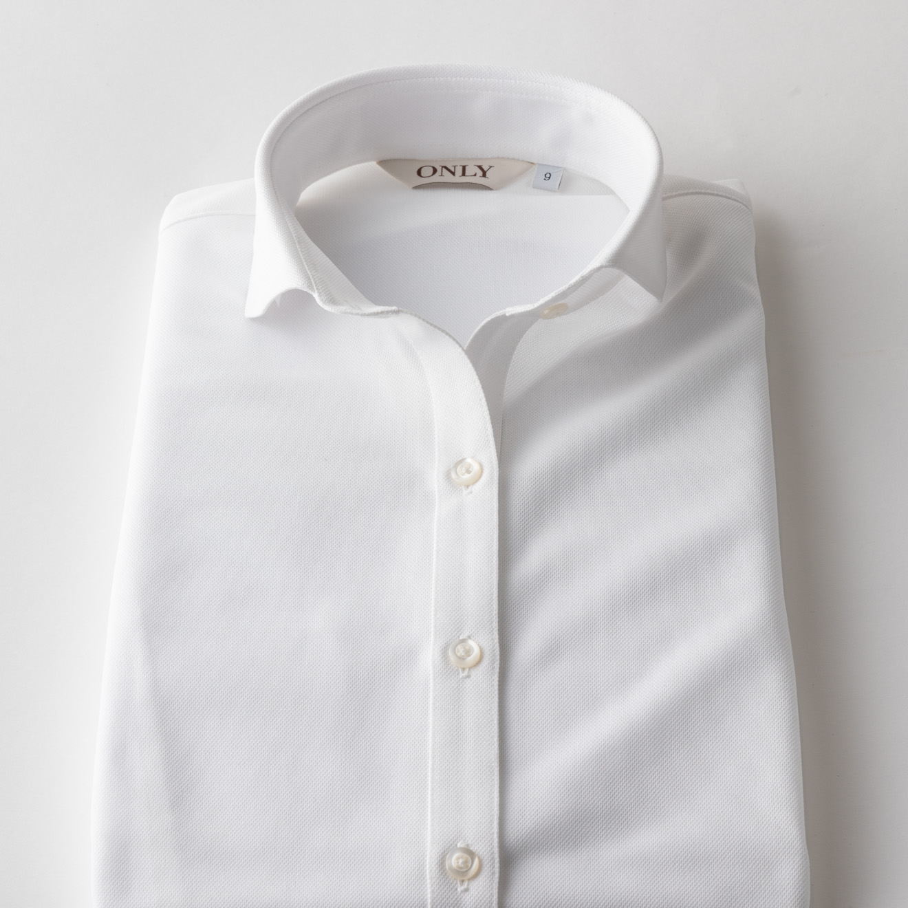 ONLY トリコットニット / ホワイトカッタウェイカラー ストレッチシャツ