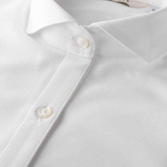 形態安定(ノンアイロン)、ストレッチ性、吸水速乾性を備えた高機能マルチファンクションファブリックを採用。