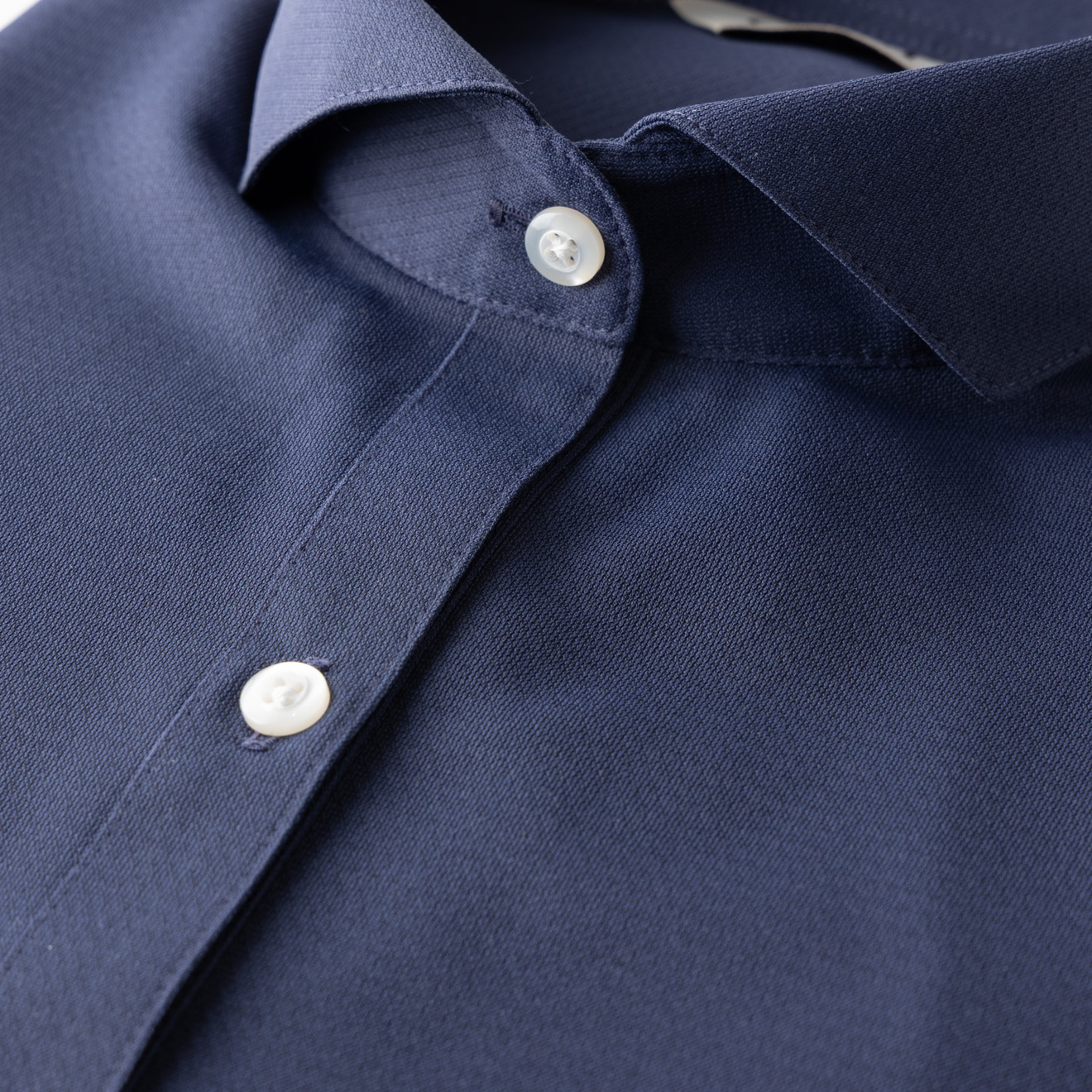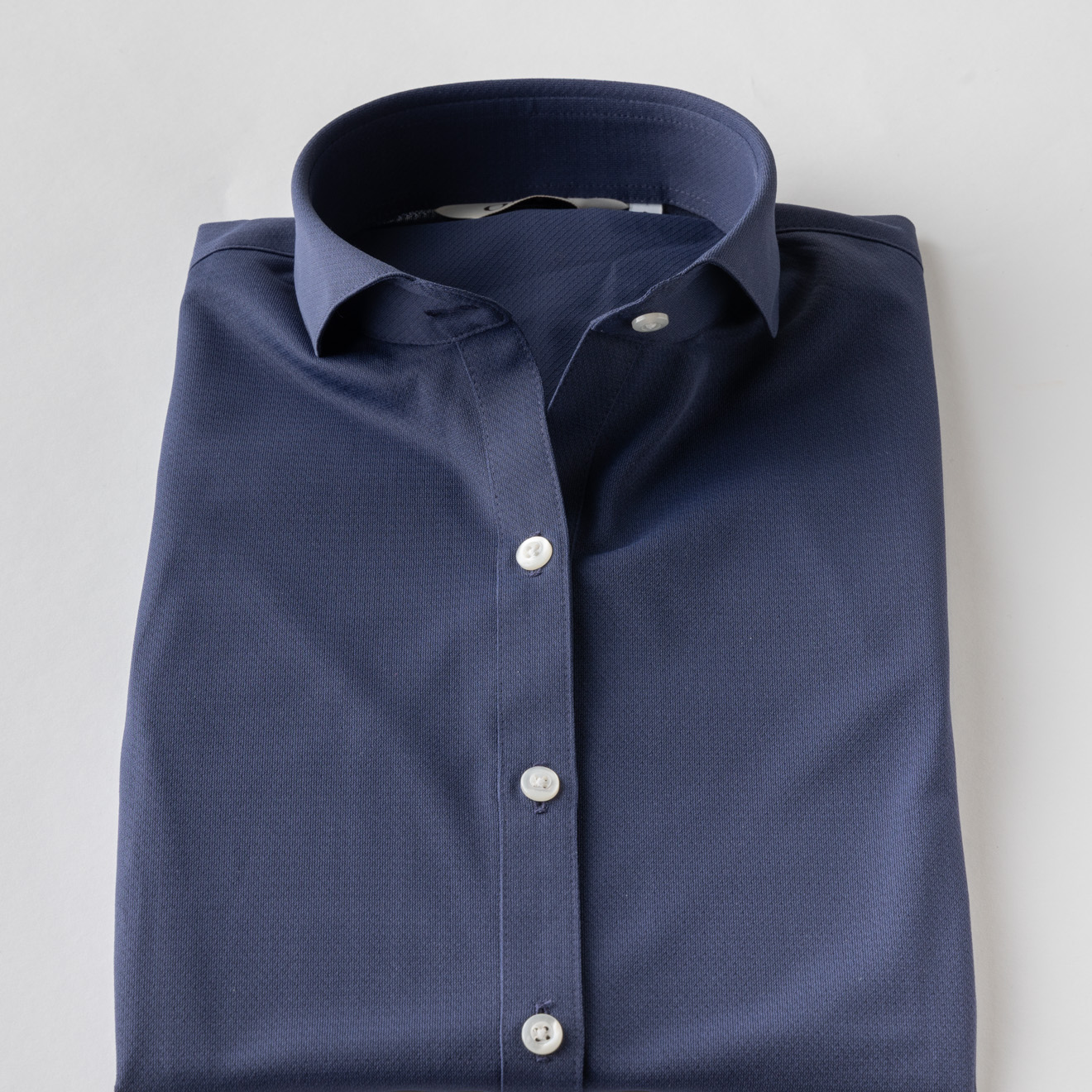 形態安定(ノンアイロン)、ストレッチ性、吸水速乾性を備えた高機能マルチファンクションファブリックを採用。