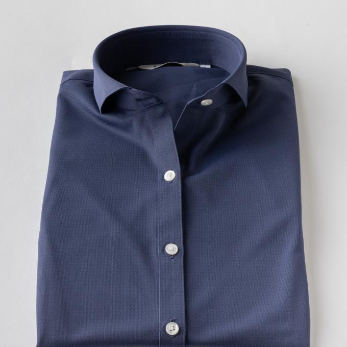 ニットでありながら布帛シャツのような上品な見え感を実現しました。